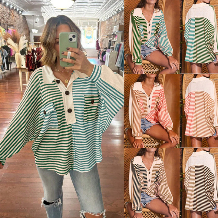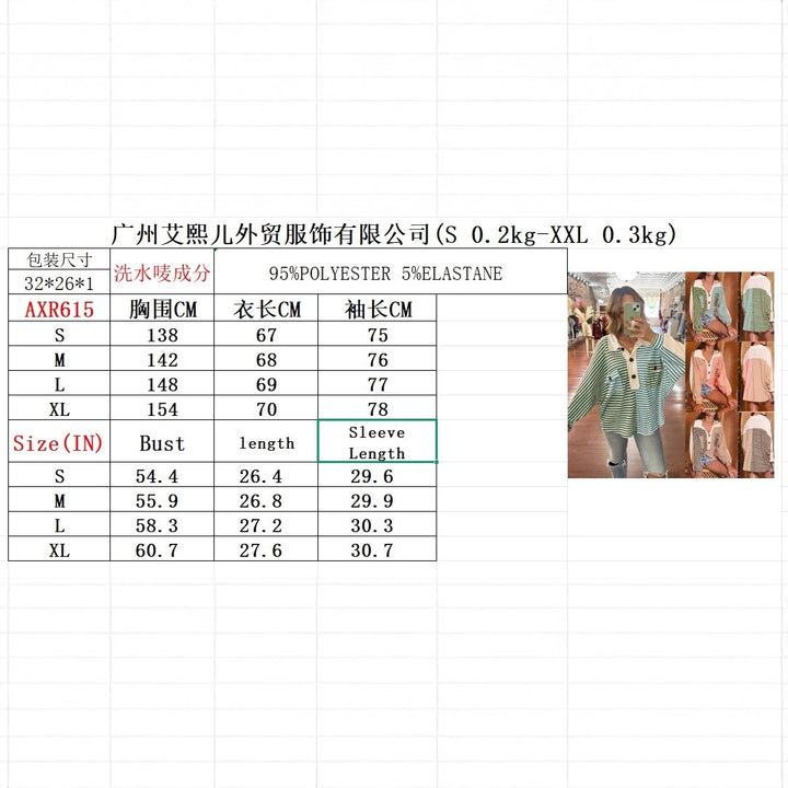 2025 Europe, America, retro street lazy wind loose striped polo shirt pullover long-sleeved top