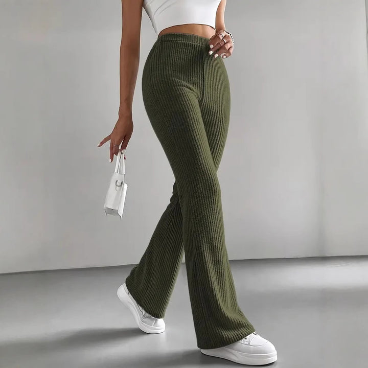 2025 European and American fashion casual pants women's flared pants warm solid color hip lift versatile casual trousers women's clothing