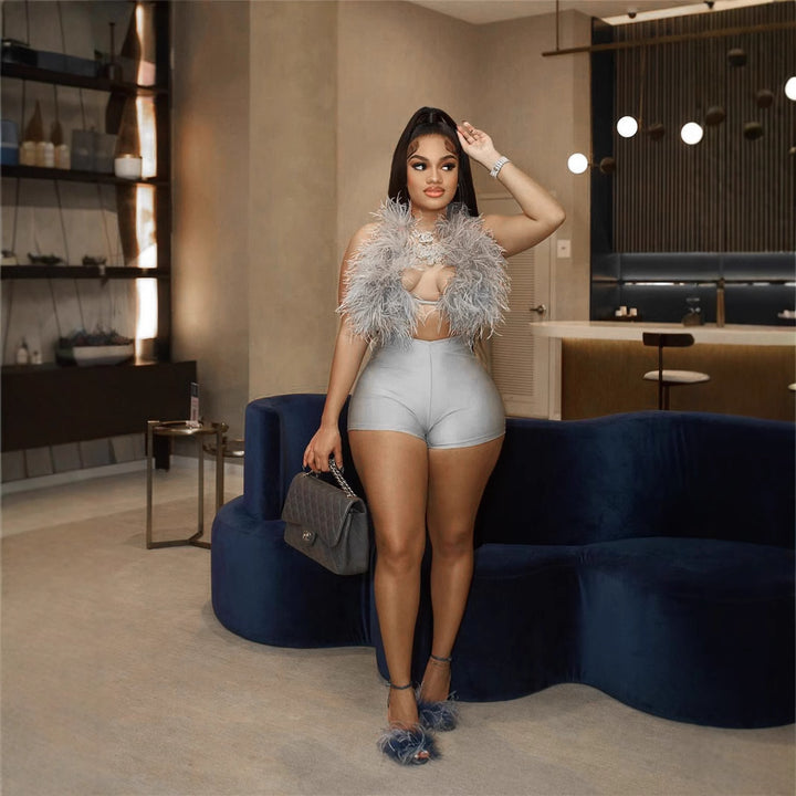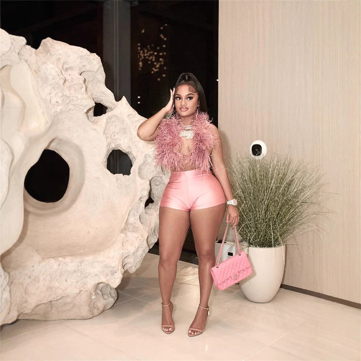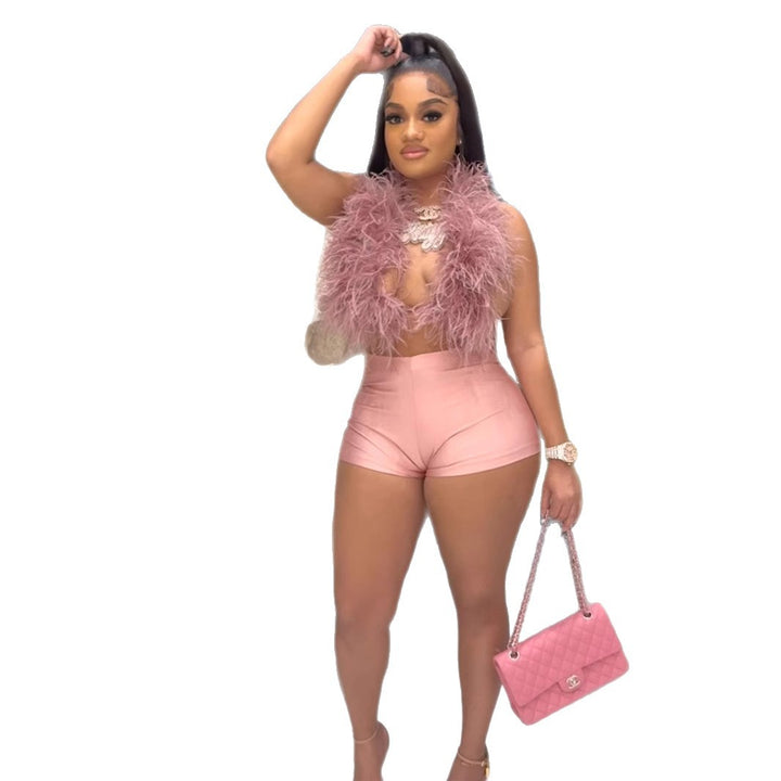 2025 European and American summer new fashion sexy sleeveless top tight shorts suit women