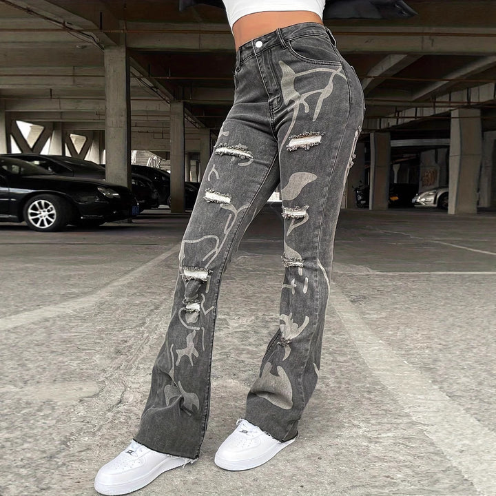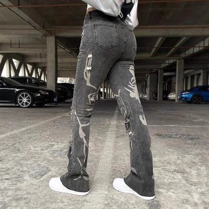 2025 independent station European and American women's casual pants, thin imitation jeans, wide legs