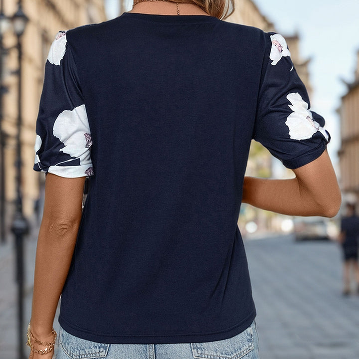 2025 new casual versatile summer top personality bubble sleeve crew neck printed t-shirt women