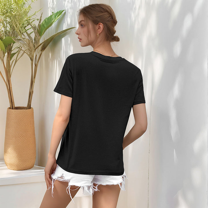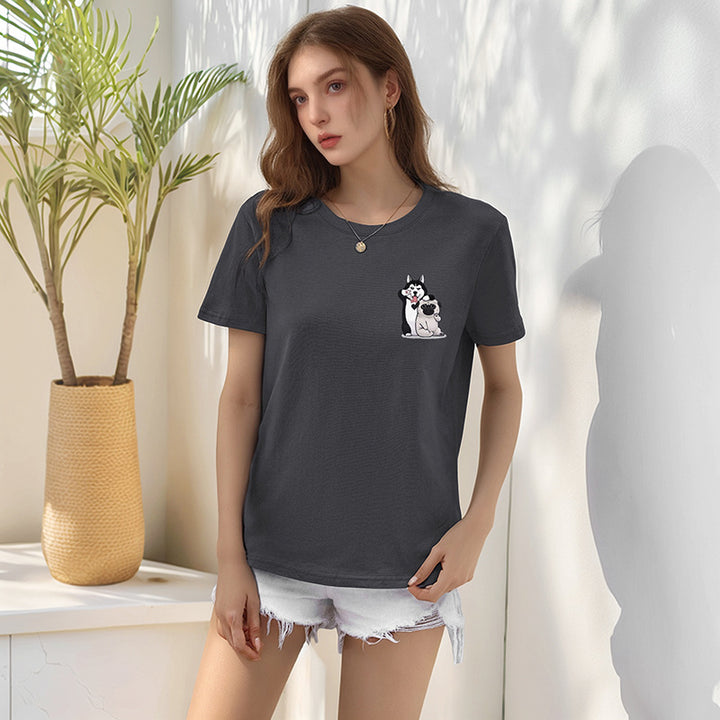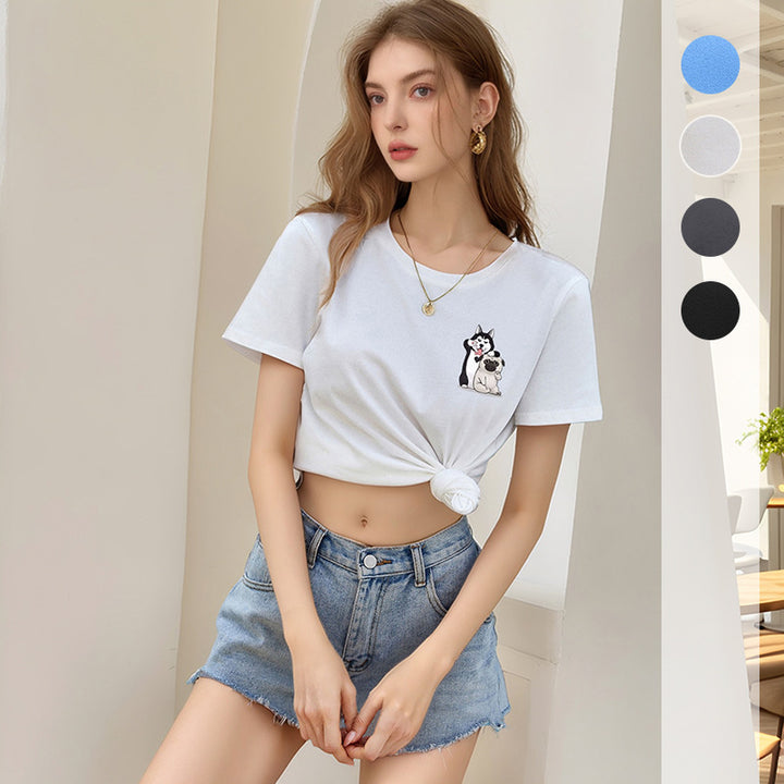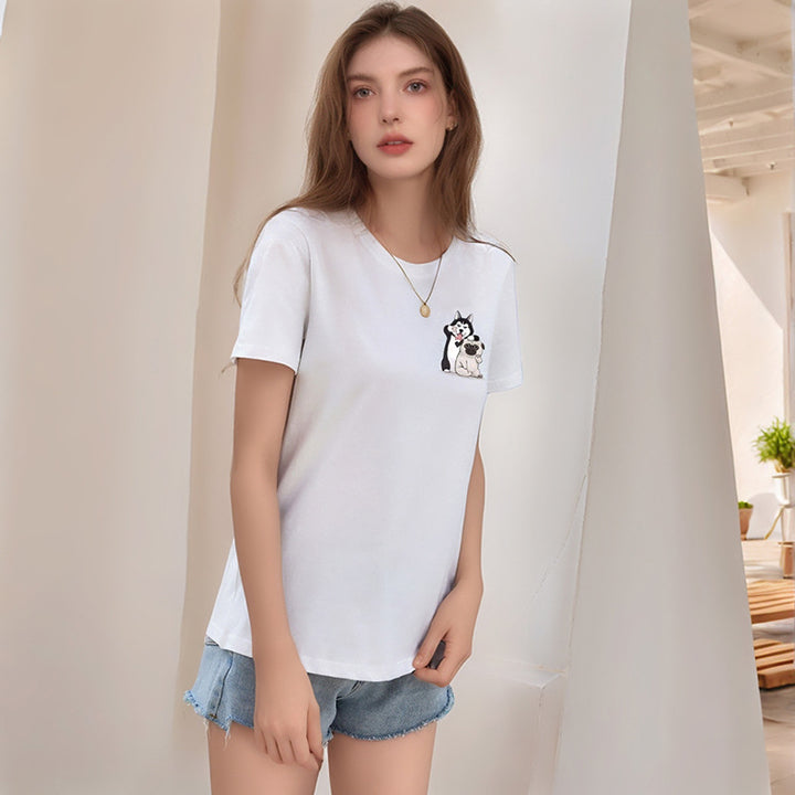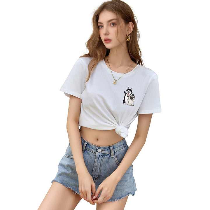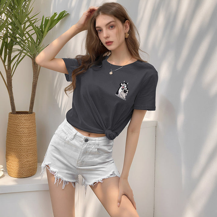 2025 new European and American casual tops loose crew neck cute puppy cartoon printed t-shirt women