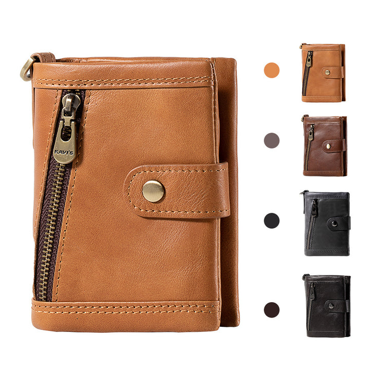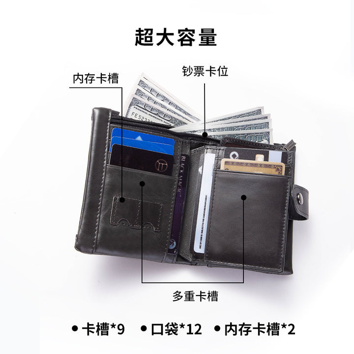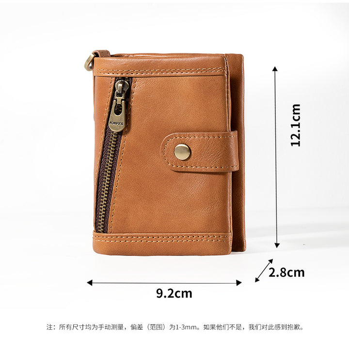 2025 new European and American leather wallet RFID multi-card ID short wallet zipper leather wallet female