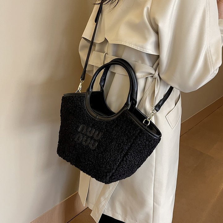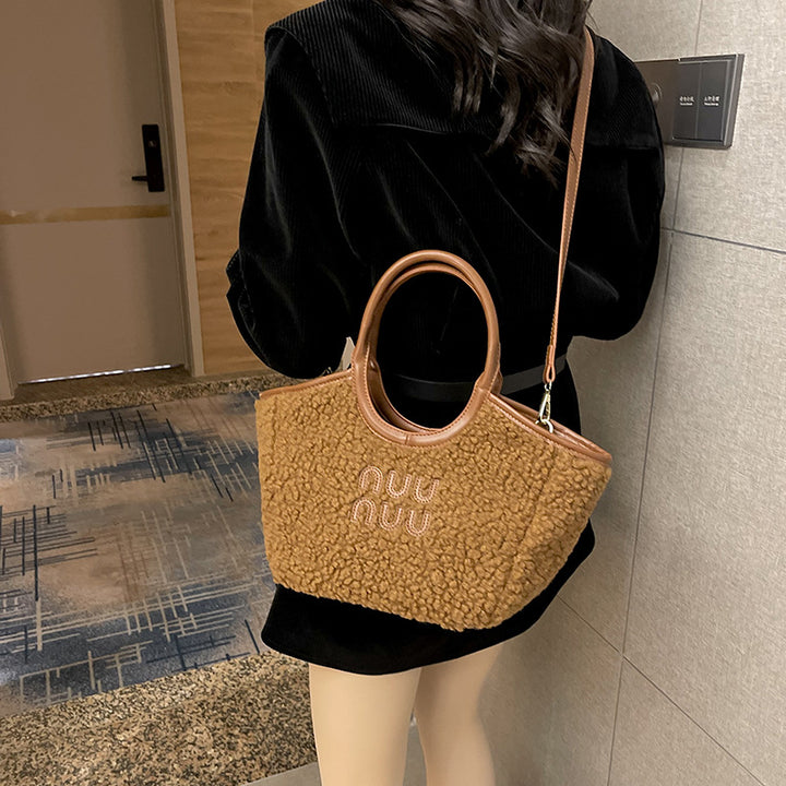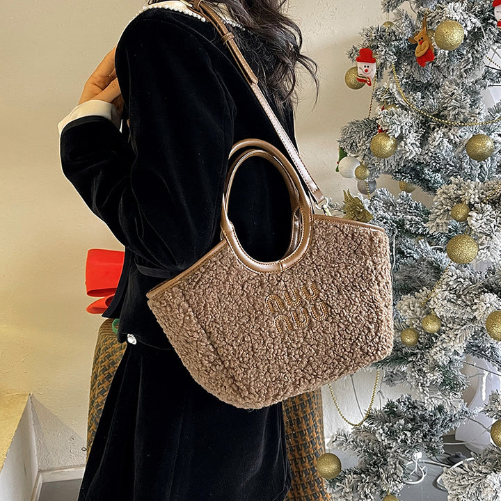 2025 new lamb wool plush bag women's tote bag large capacity autumn and winter messenger bag ...