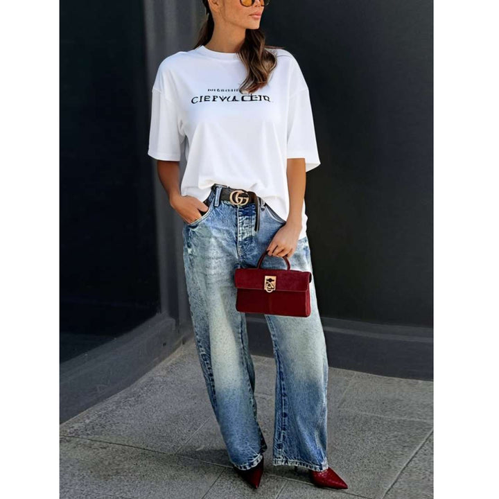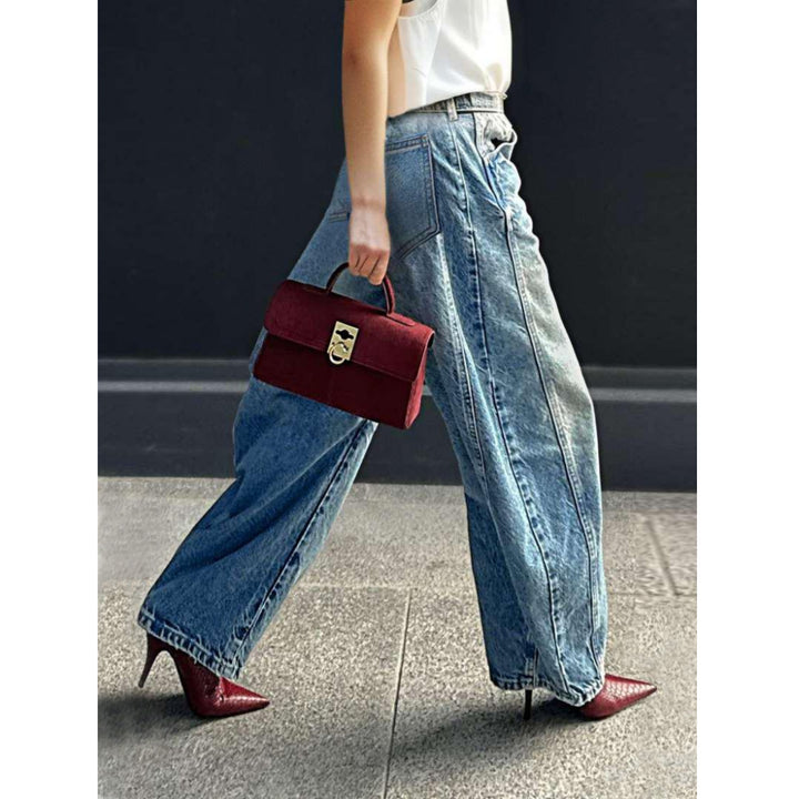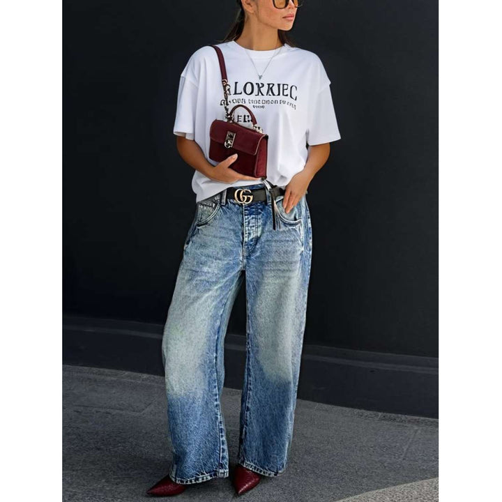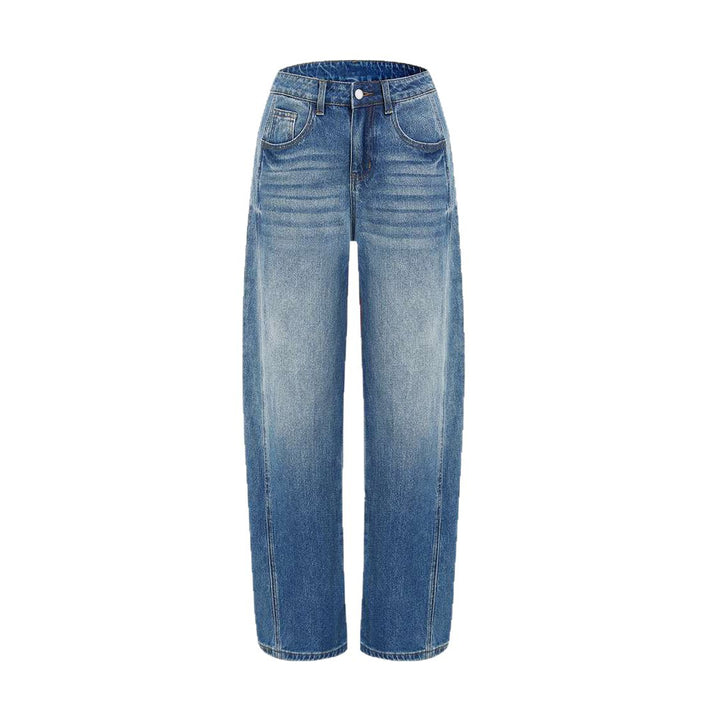 2025 new standard size women's clothing nostalgic feng shui washed denim wide-leg jeans elastic fashion casual trousers