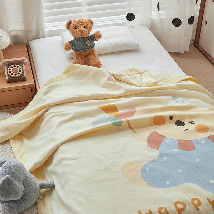 2025 new summer light oxygen class A cartoon cotton pure cotton double-layer yarn children's blanket Xia Liang quilt air conditioner quilt