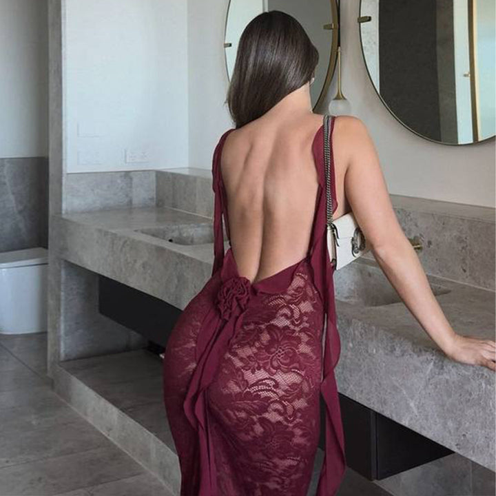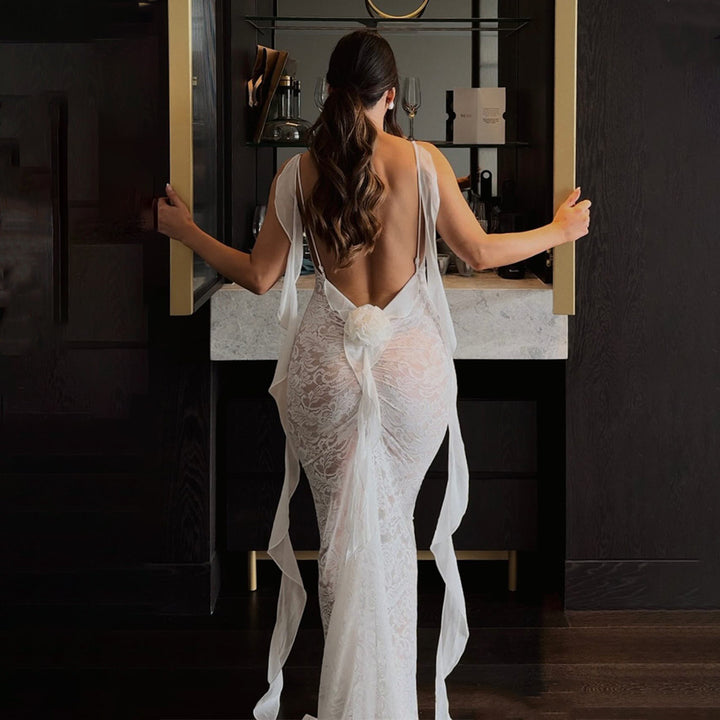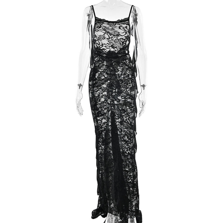 2025 new suspender halter trailing dress fashionable sexy streamer perspective slim dress