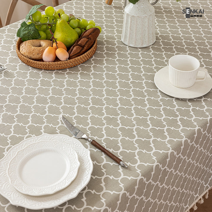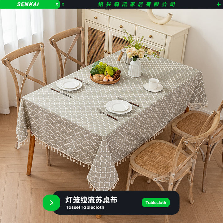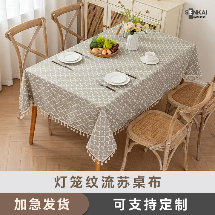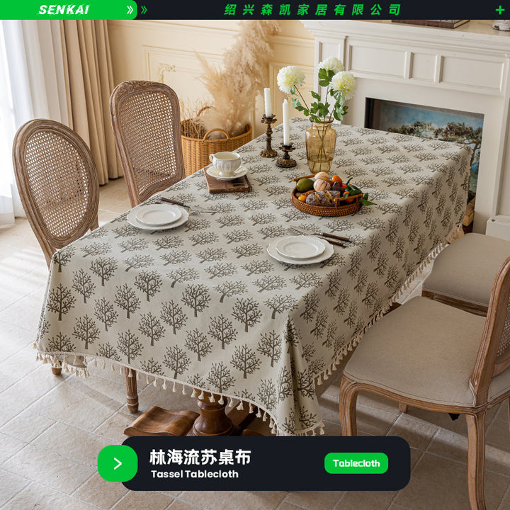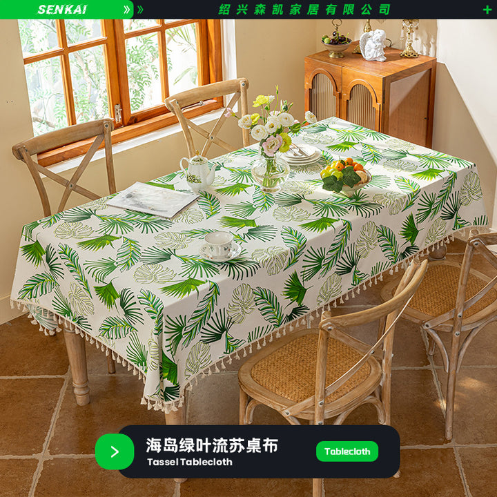 Lantern fringed tablecloth, Jane fringed tablecloth, Linhai fringed tablecloth, Island green leaf fringed tablecloth |