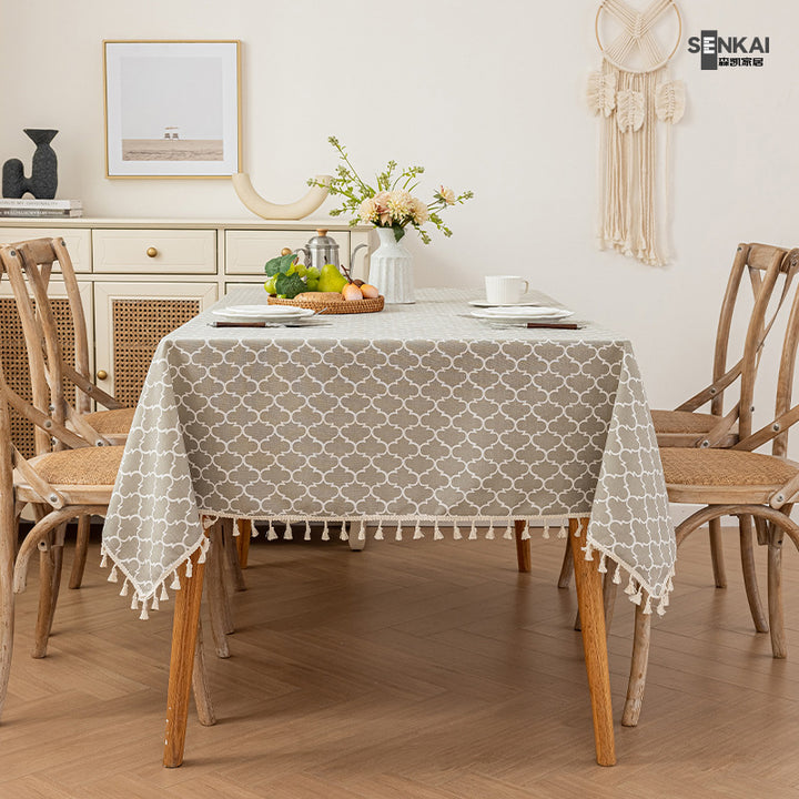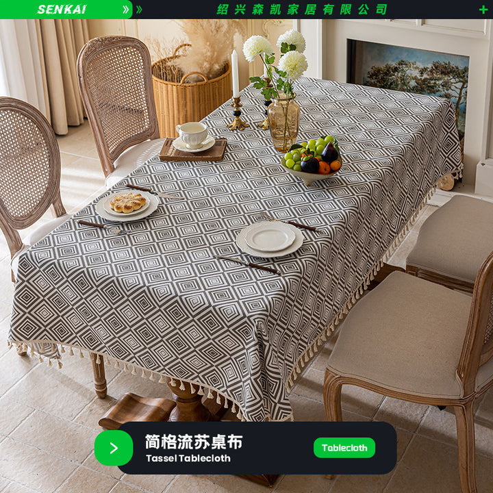 2025 new tassel imitation hemp printed dining table tablecloth waterproof and dustproof rectangular tablecloth table cover free shipping