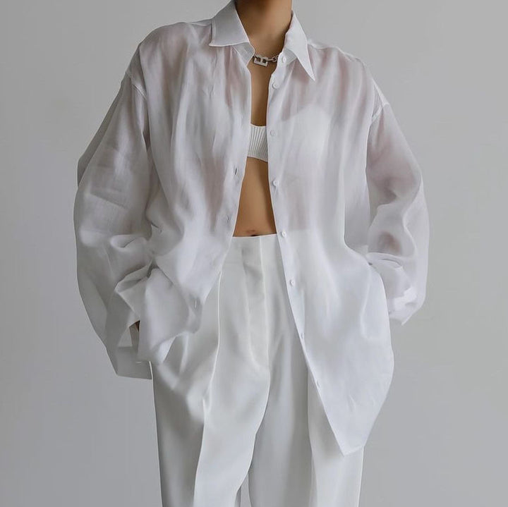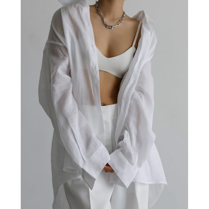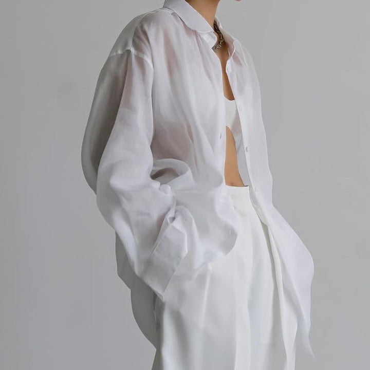 2025 spring and summer new micro-transparent pure wind shirt cardigan top light sunscreen lining European and American fashion women's clothing