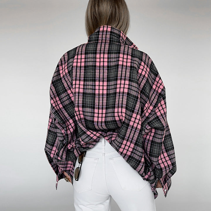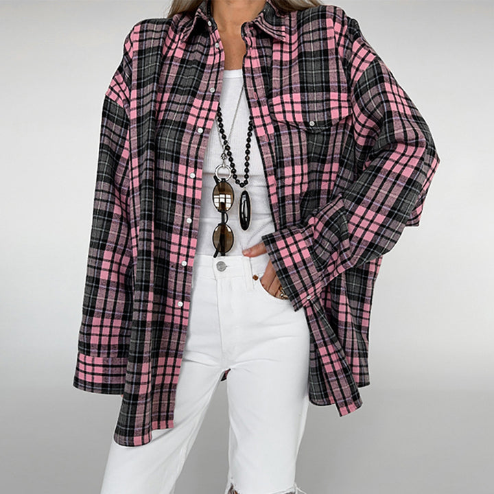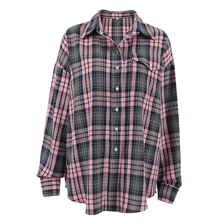 2025 spring loose pink plaid shirt fashion casual oversiez sunscreen shirt cardigan European and American women's clothing