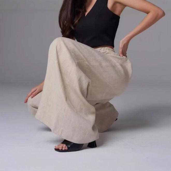 2025 summer and autumn new lazy straight drape loose casual trousers linen high waist wide leg Yamamoto trousers Europe and America
