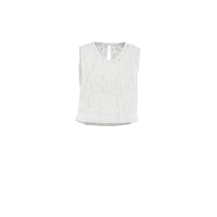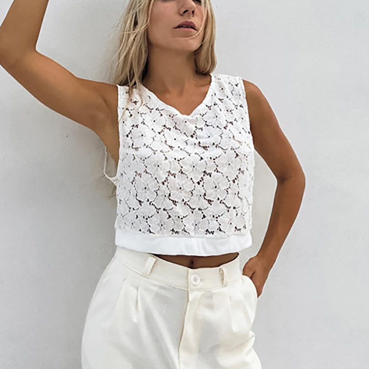 2025 summer European and American style fashion hollow pullover lace vest women's short white V-neck sleeveless top women's clothing