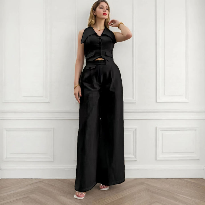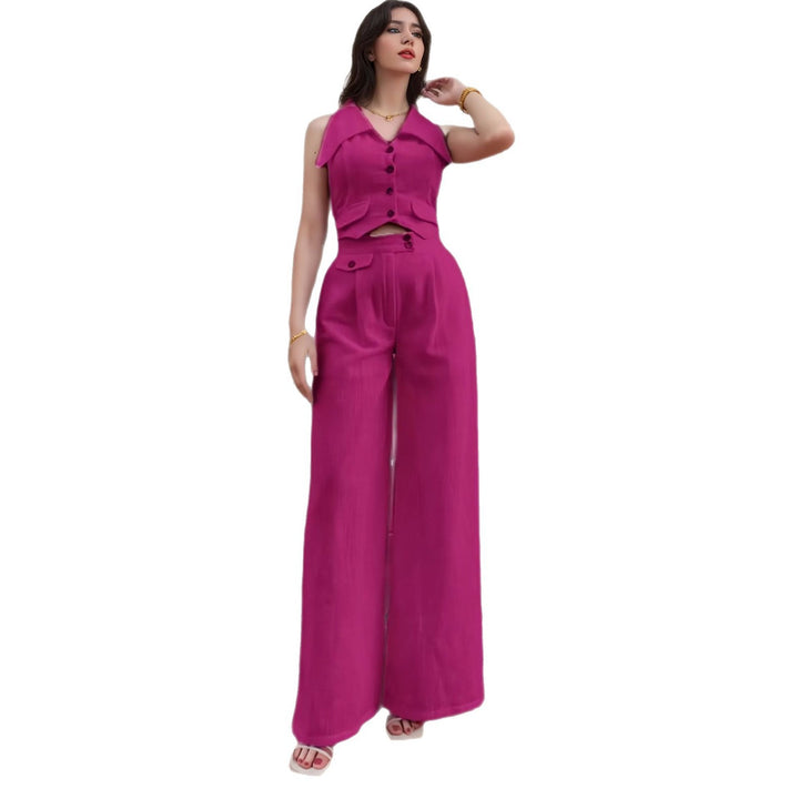 2025 summer new European and American women's clothing solid color top sleeveless waist two-piece casual trousers set