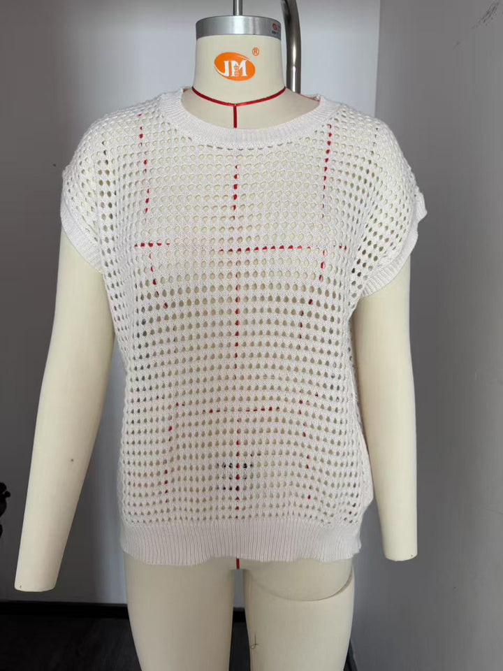 2025 summer new European and American women's clothing women's round neck hollow sunscreen knitted sweater blouse