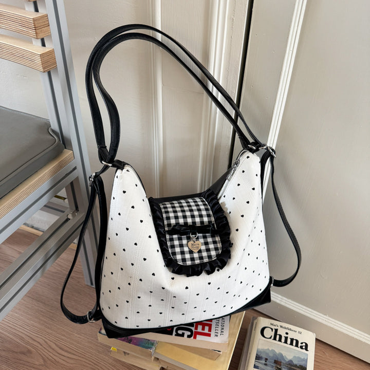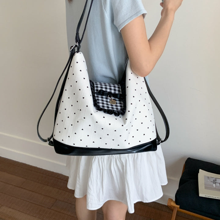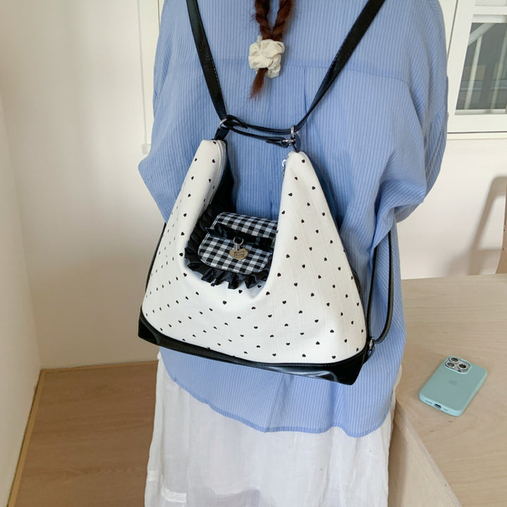 2025 summer new fashion tote bag high sense polka dot portable backpack college student cute ...