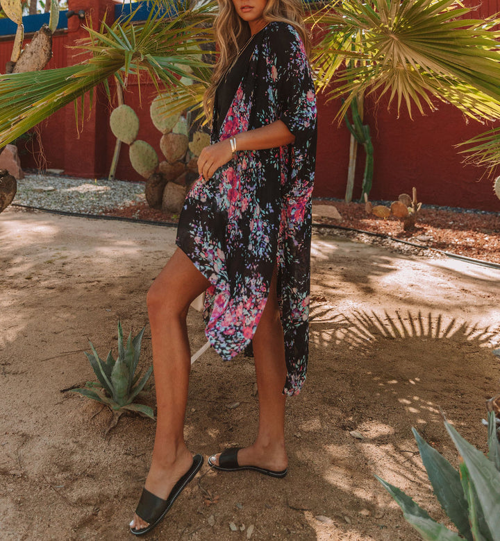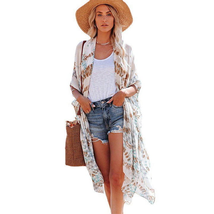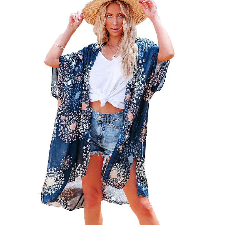 2025 summer new printed blouse women's European and American casual medium and long loose tulle sunscreen jacket