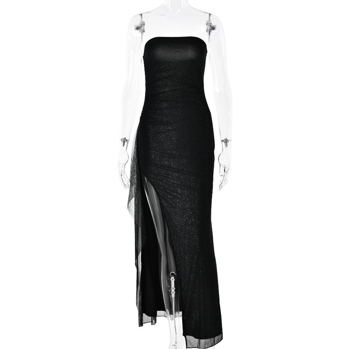 black, Using milk silk + hot silver mesh fabric, tube top high split design, Note: Customized hot silver flash fabric, picture effect!!! |