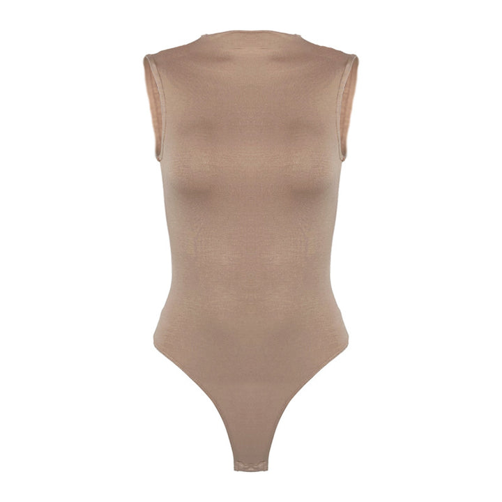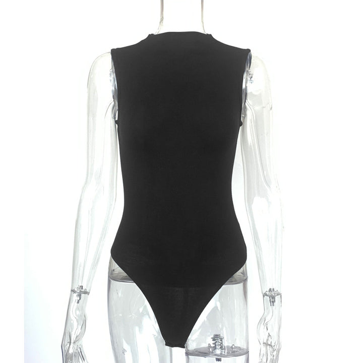 2025 summer new women's clothing ins European and American Internet celebrities fashion jumpsuit cotton T-shirt slim sleeveless semi-turtleneck jum...