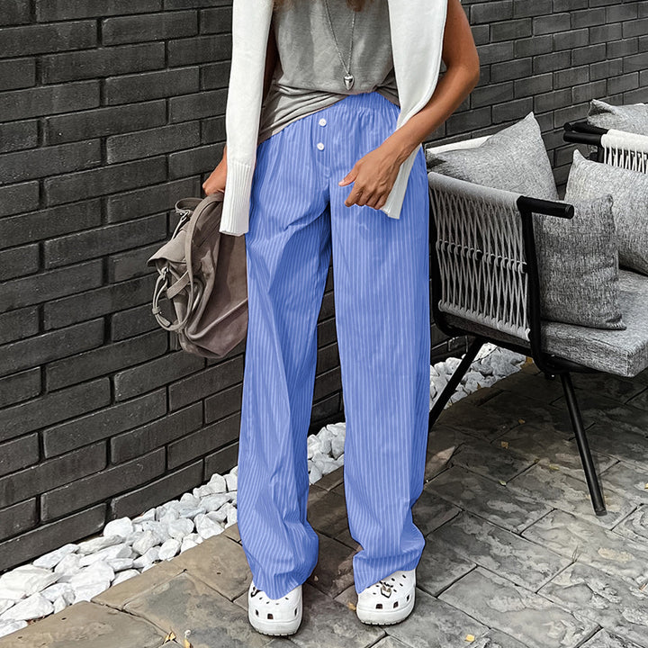 2025 summer street fashion blue striped trousers women's European and American wide-leg trousers casual trousers design sense women's clothing