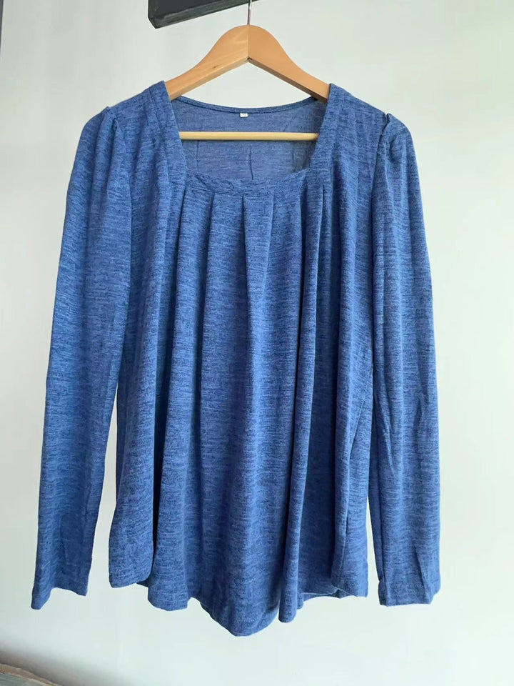 2025 women's clothing autumn and winter new European and American casual bubble sleeve square collar pleated long sleeve T-shirt