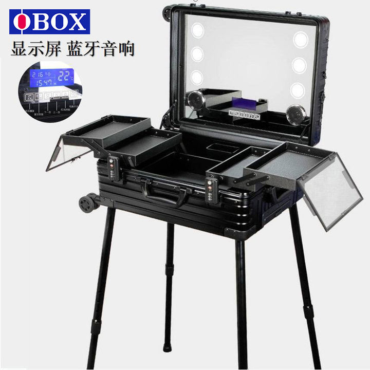 22-Inch aluminum alloy trolley cosmetic case with lamp display Bluetooth audio universal wheel heel makeup embroidery toolbox