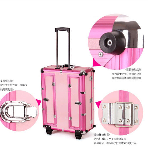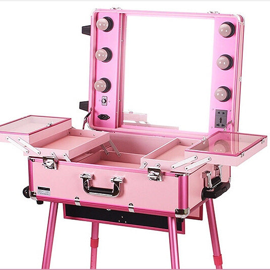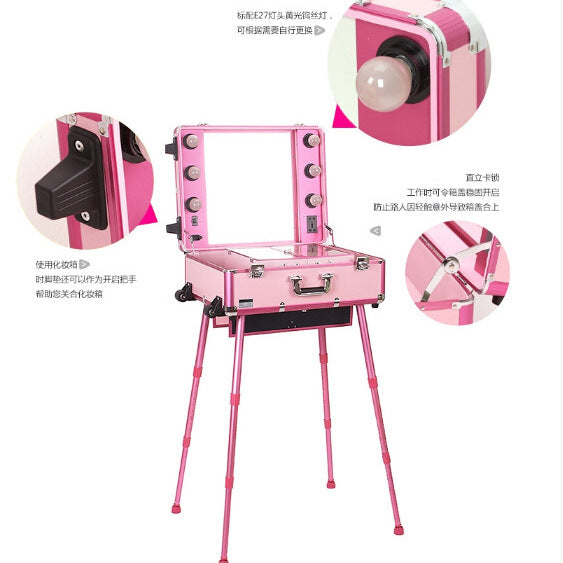 22-Inch professional cosmetic case with lamp, special tie rod makeup case for follow-up artist, tools, advanced multi-layer mirror cosmetics