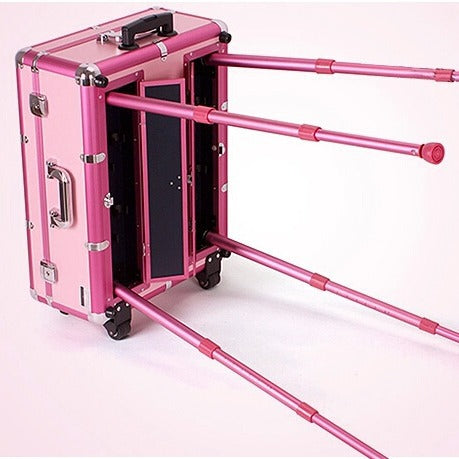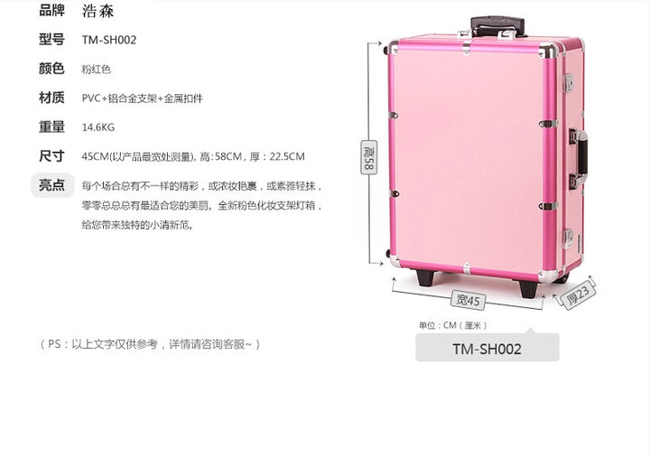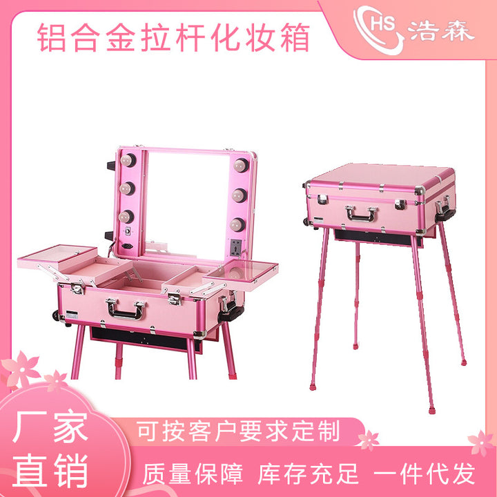 22-Inch professional cosmetic case with lamp, special tie rod makeup case for follow-up artist, tools, advanced multi-layer mirror cosmetics