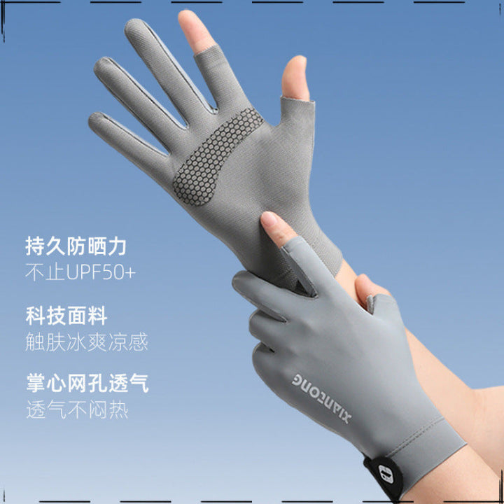 25 years of new men's sunscreen flip half-finger gloves, driving fishing, riding anti-ultraviolet anti-skid touch screen gloves