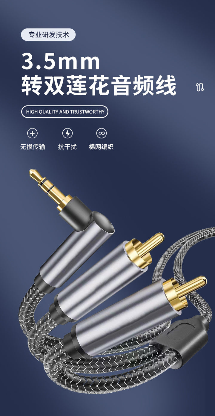 3.5 to 2rca audio connection mobile phone computer power amplifier speaker elbow 3.5mm to double lotus cable one point and two