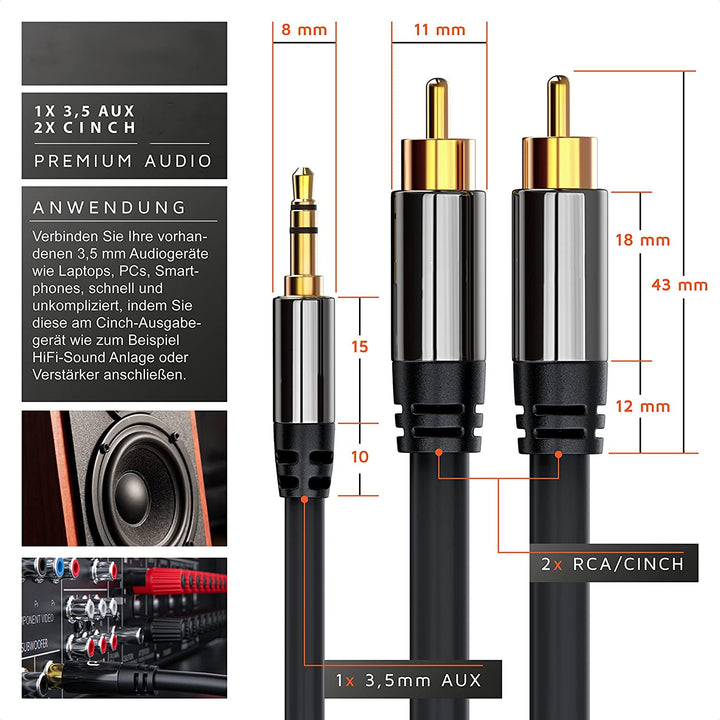 3.5 to 2rca audio mobile phone computer power amplifier speaker 3.5mm to double lotus cable pure copper audio cable manufacturer