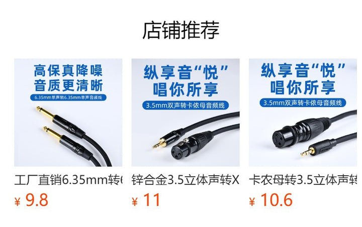 3.5 to 6.5mm audio male-to-male audio cable, mobile phone, computer audio, electric guitar, electronic organ connection, large to small.