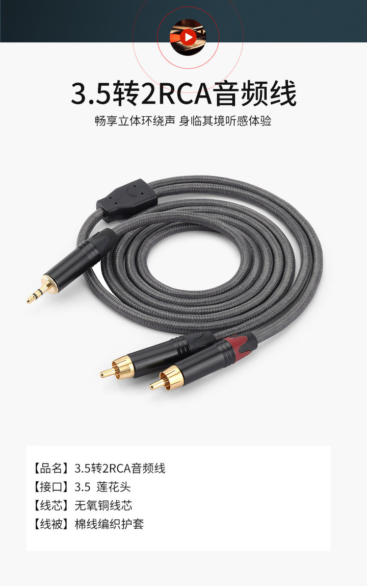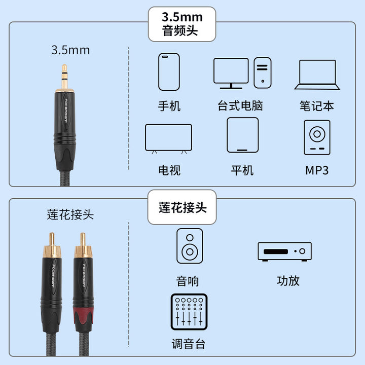 3.5Mm Rotary 2RCA Male Braided Audio Cable Stereo One Point Two Double Lotus Audio TV Subwoofer