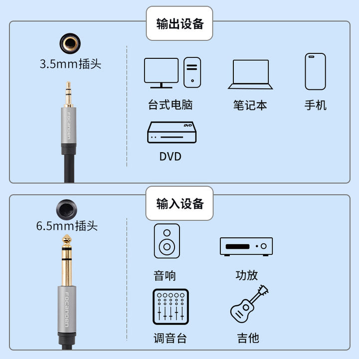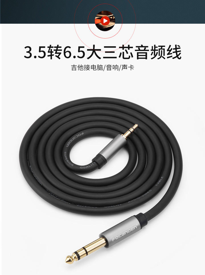 3.5mm to 6.5mm large three-core aux audio cable male-to-male mobile phone computer connection audio guitar power amplifier
