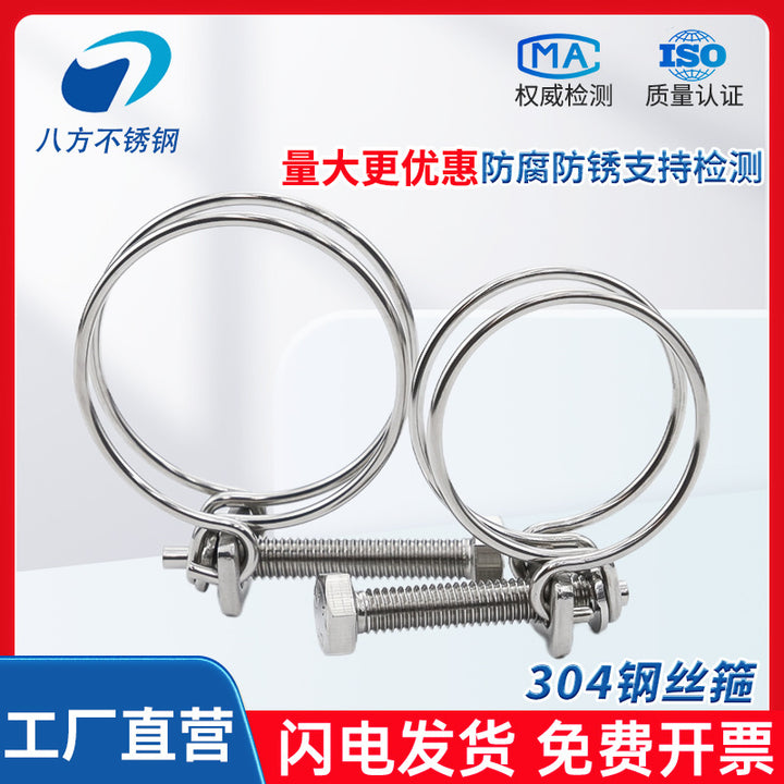 304 double steel wire throat hoop stainless steel clamp clamp pipe clamp gas range hood pipe double steel wire throat hoop pipe clamp