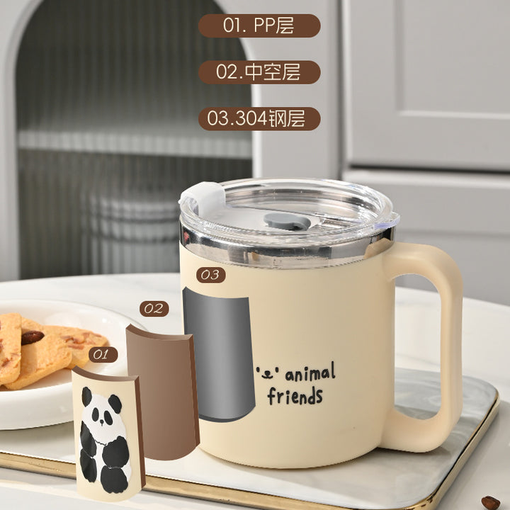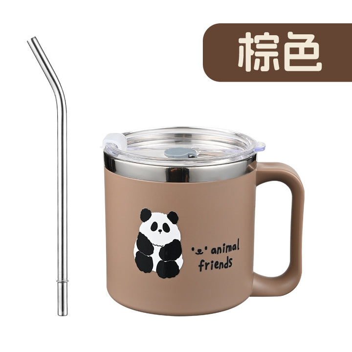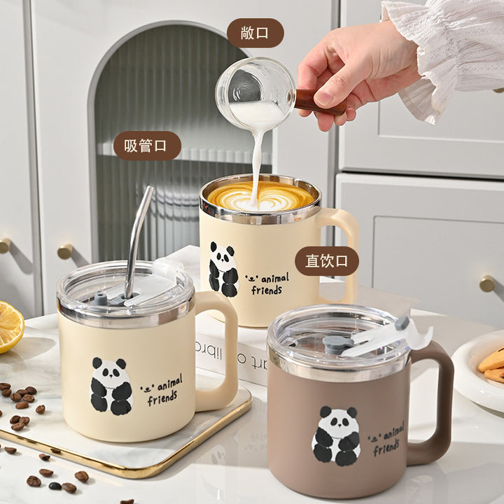 304 panda mug home office coffee cup high value with straw and lid tea cup drinking cup