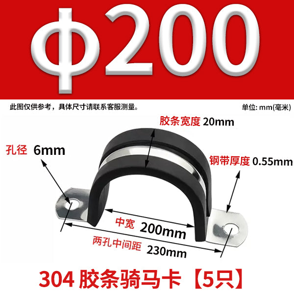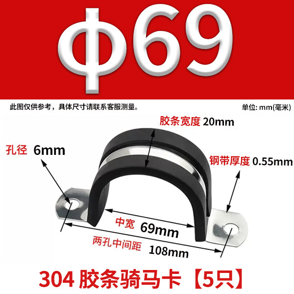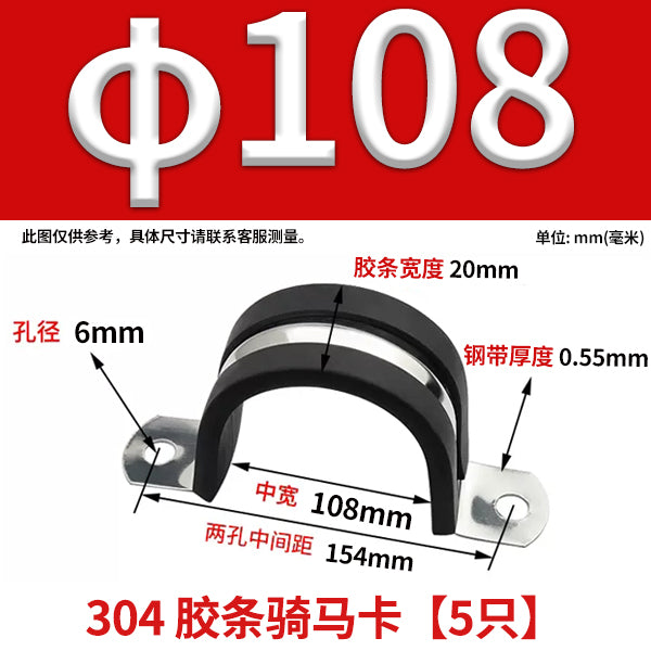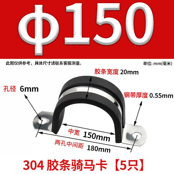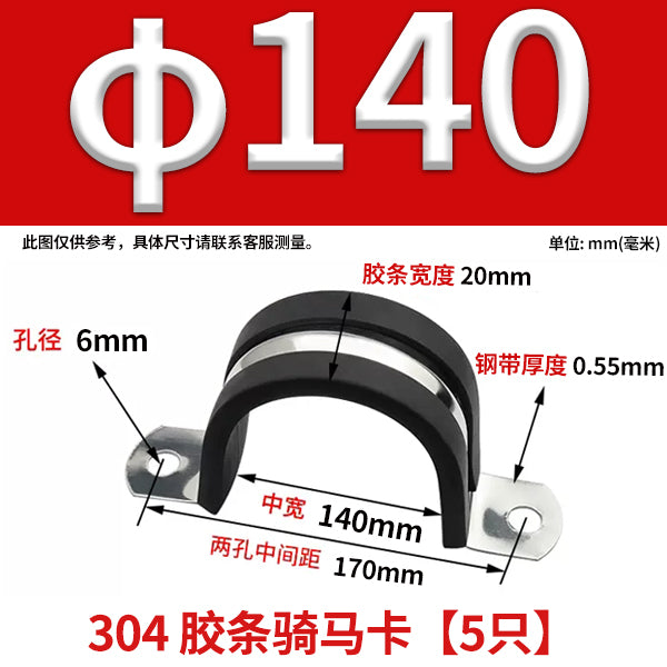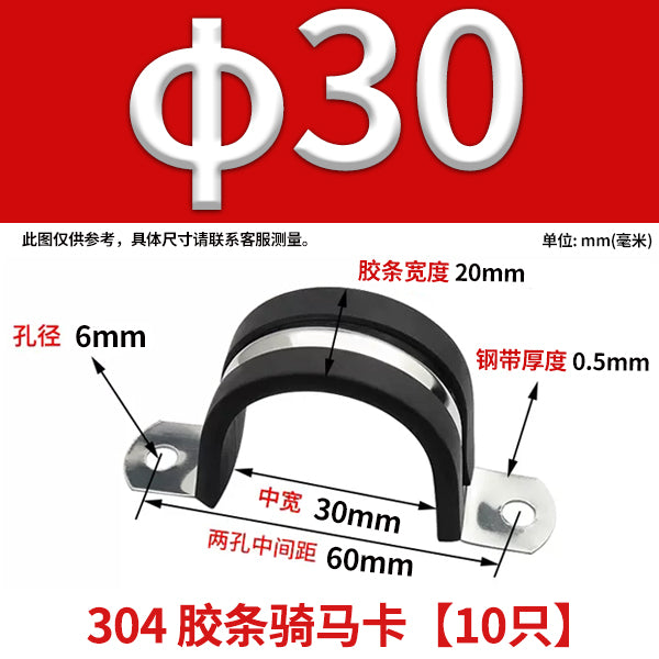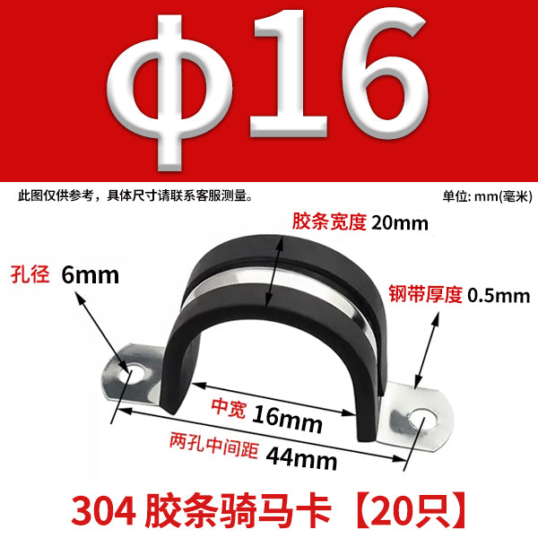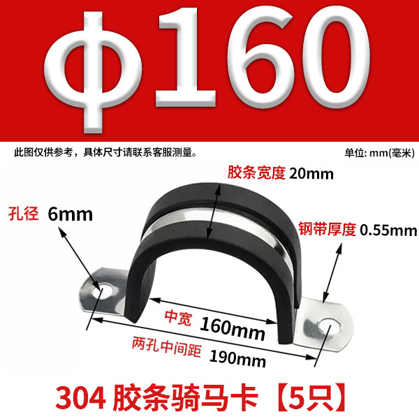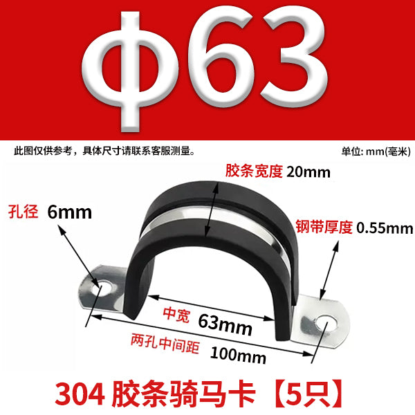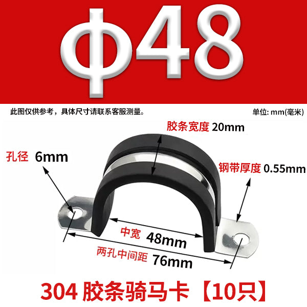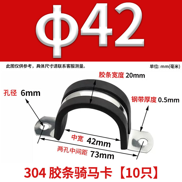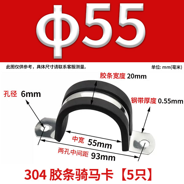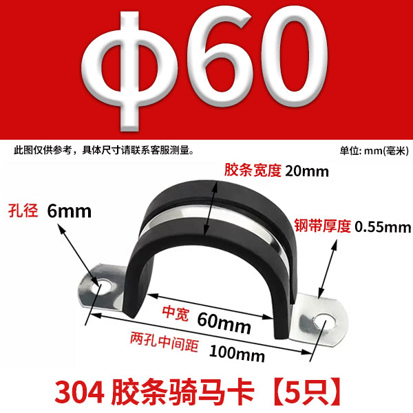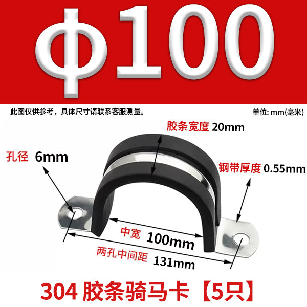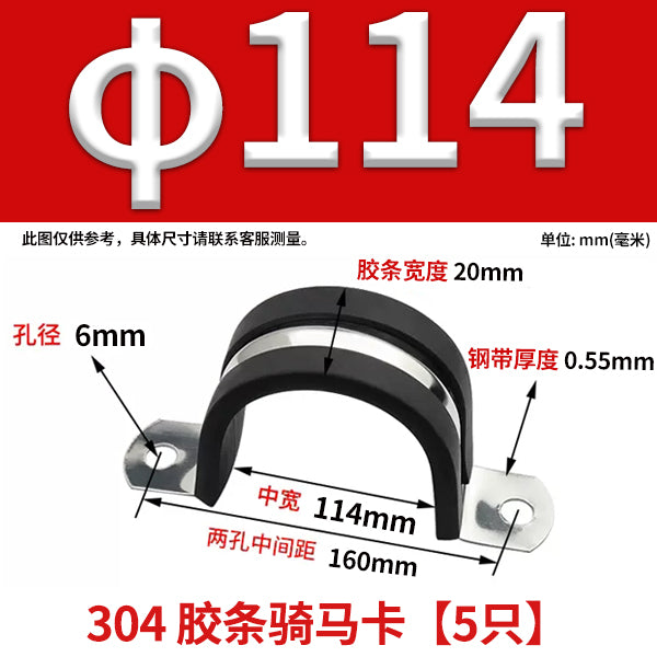 304 rubber strip riding card stainless steel clamp, clamp, pipe clamp, saddle card U-tube cassette, rubber strip riding card code