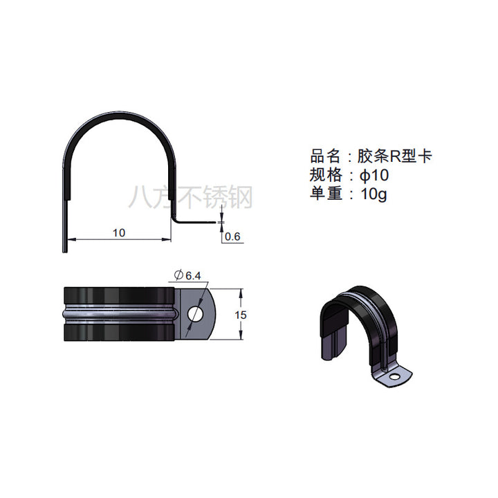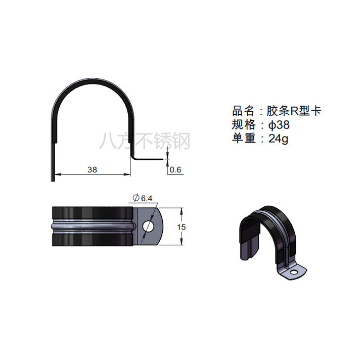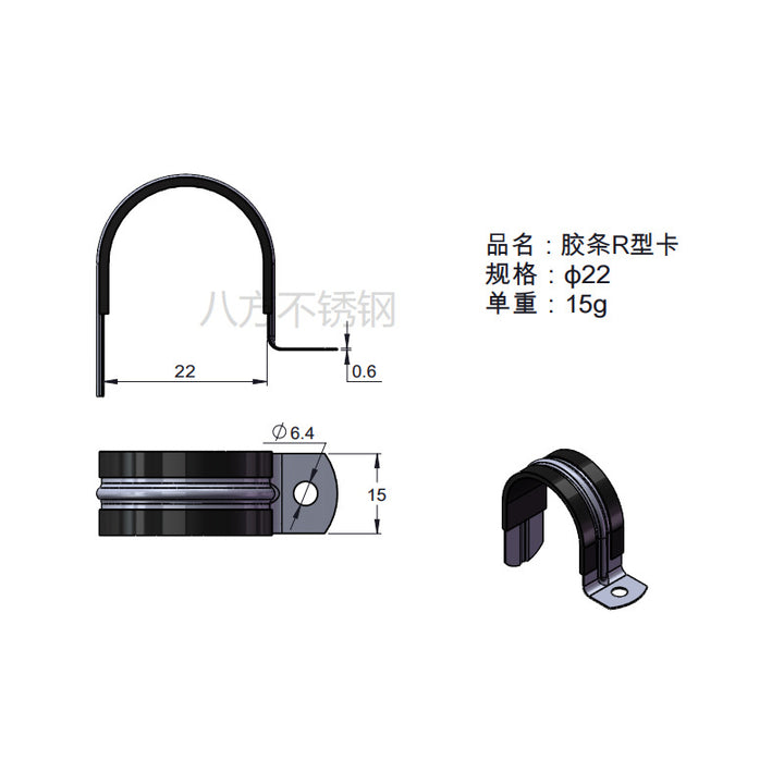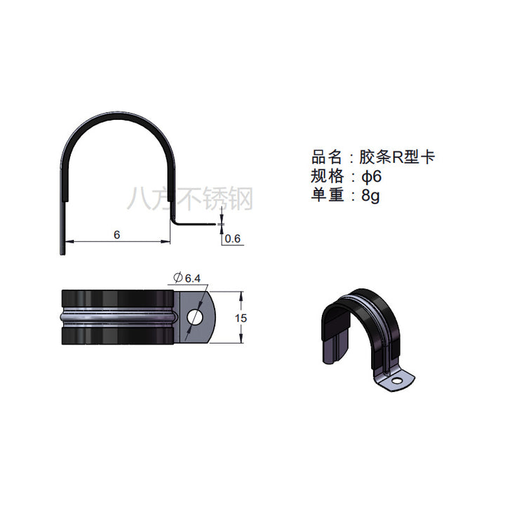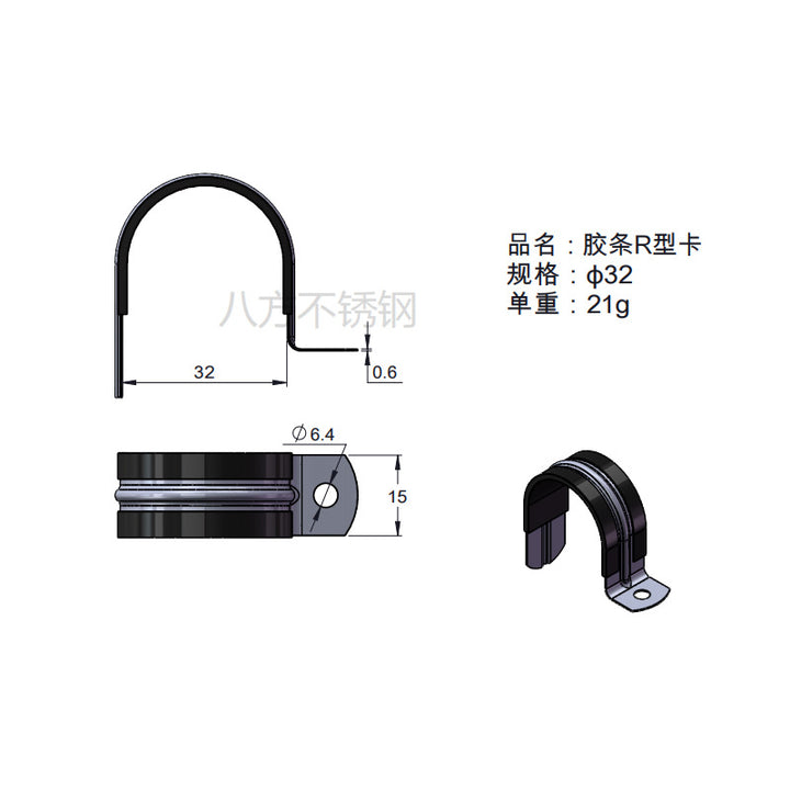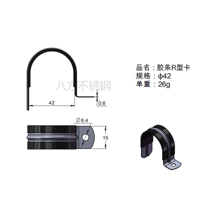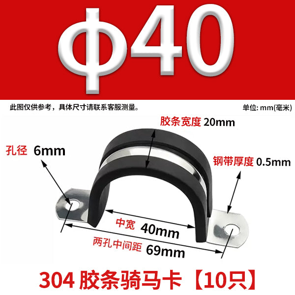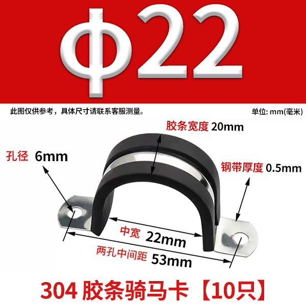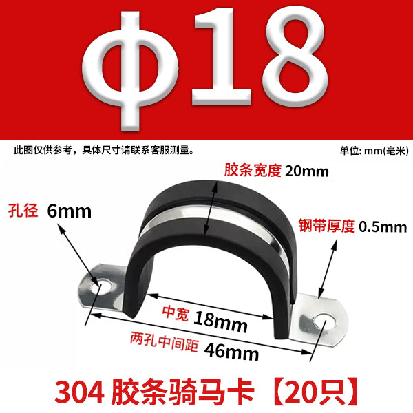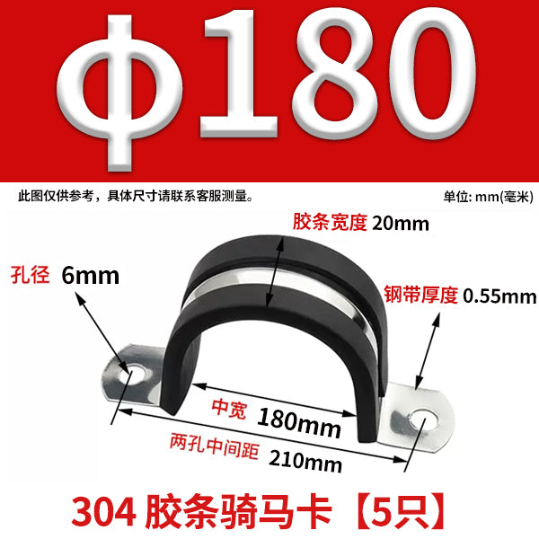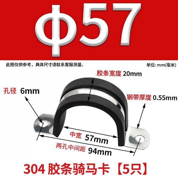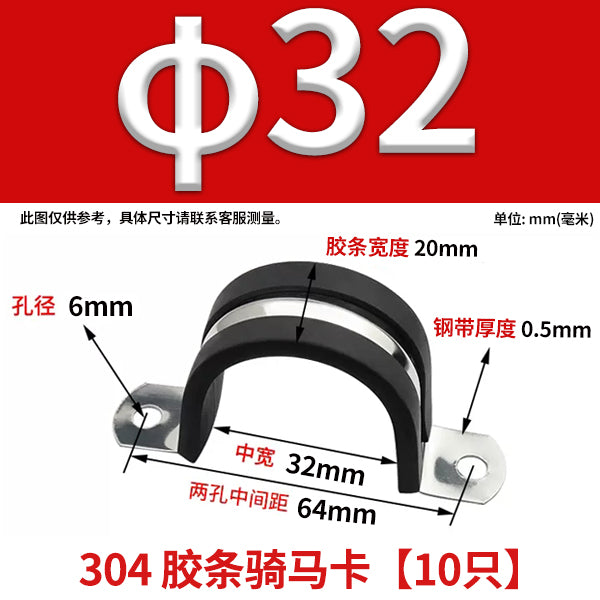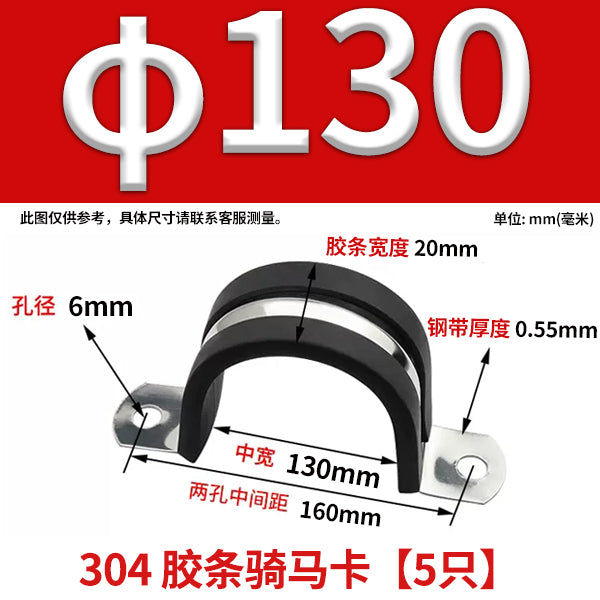 304 rubber strip riding card stainless steel clamp, clamp, pipe clamp, saddle card U-tube cassette, rubber strip riding card code