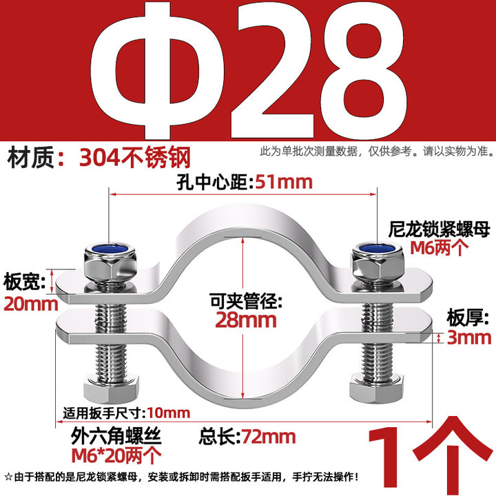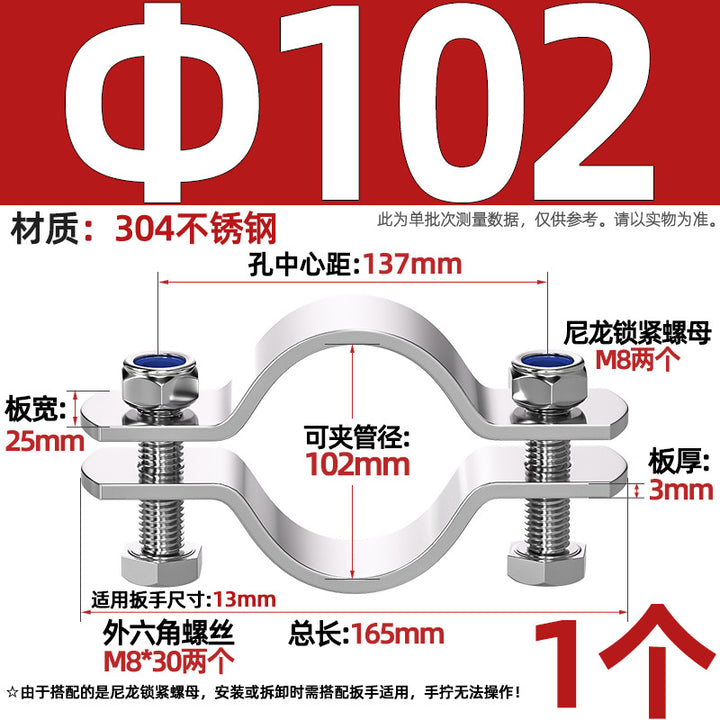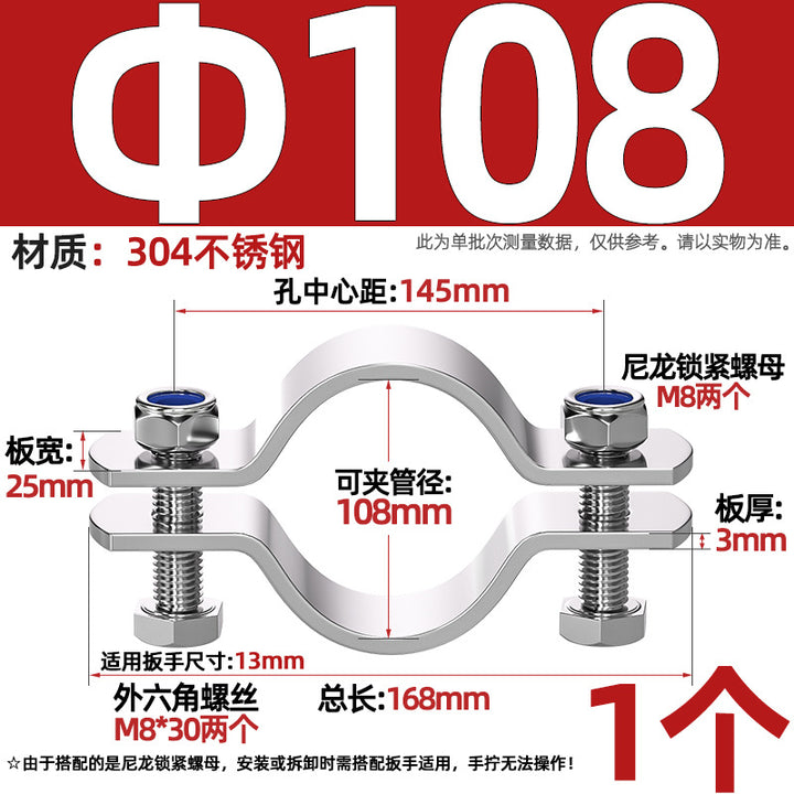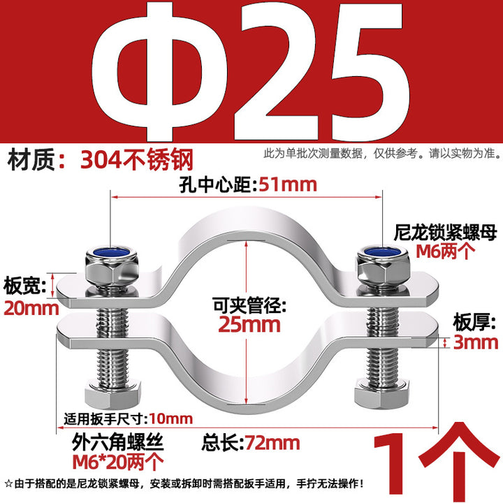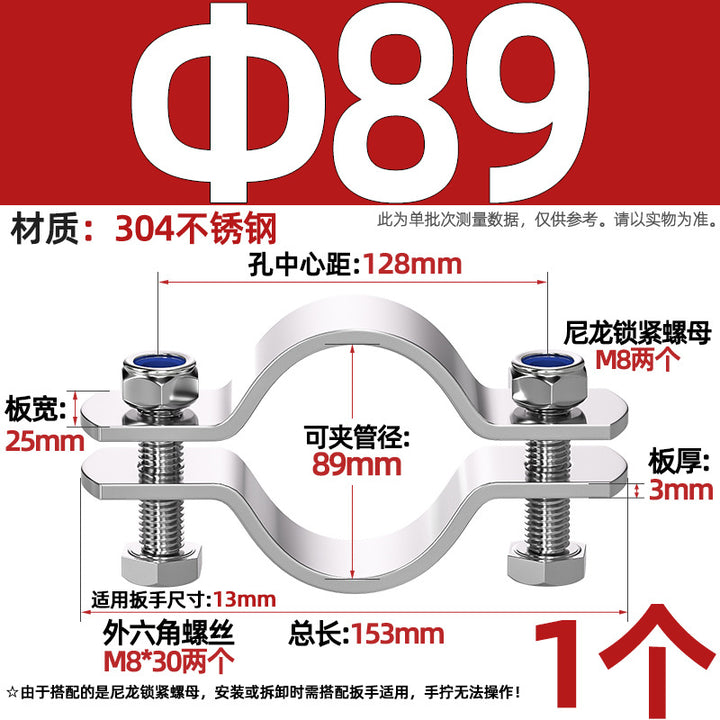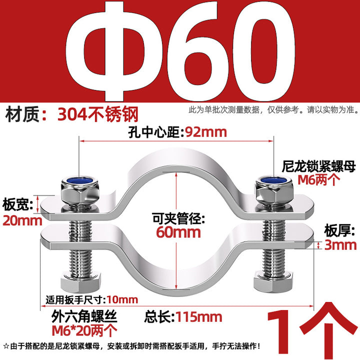 304 stainless steel clamp thickened clamp fixed pipe pipe clamp utility pole pipe bracket pipe clamp steel clamp pipe clamp