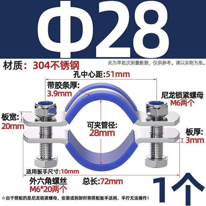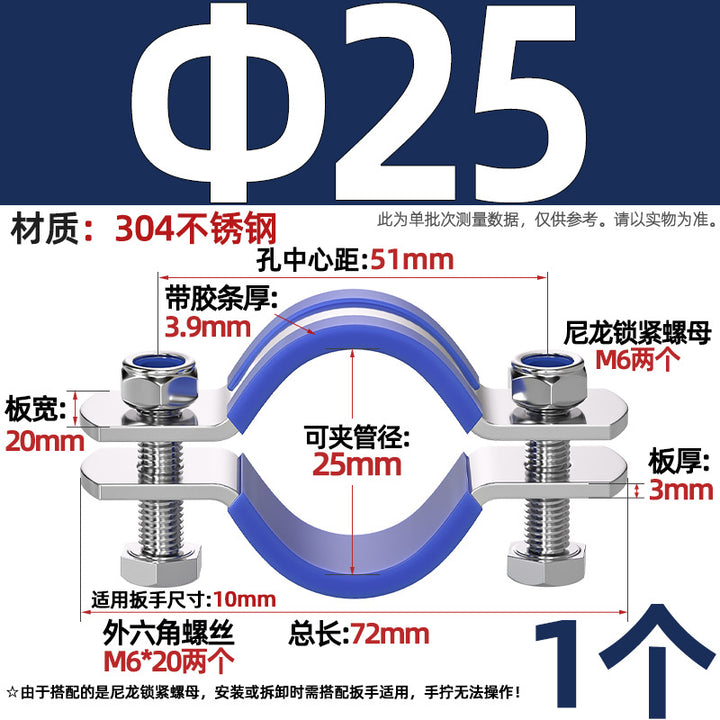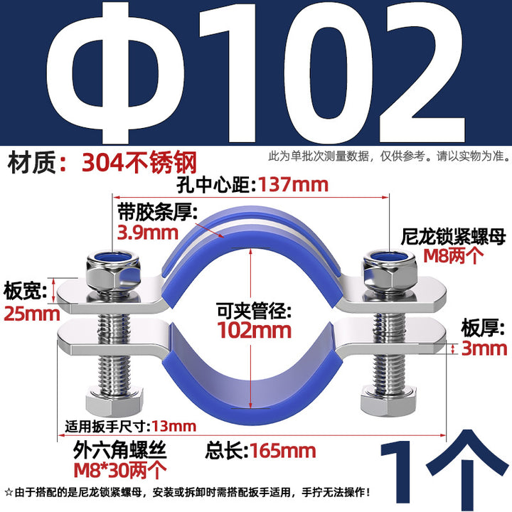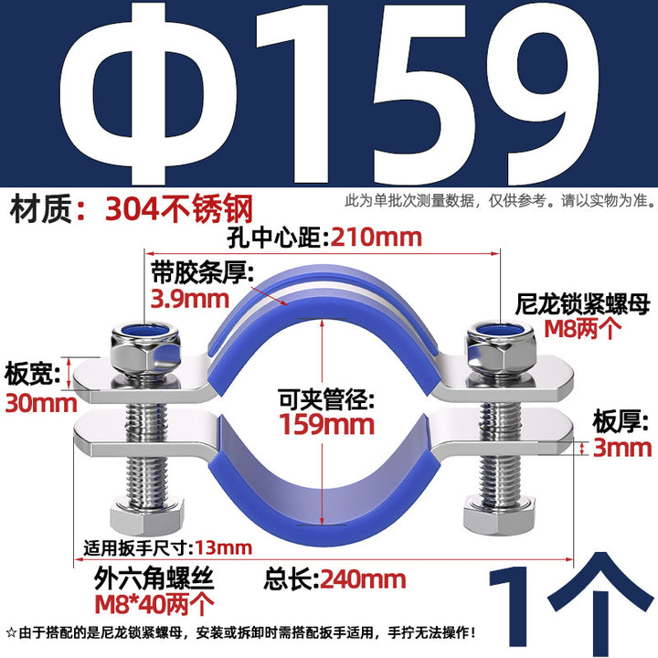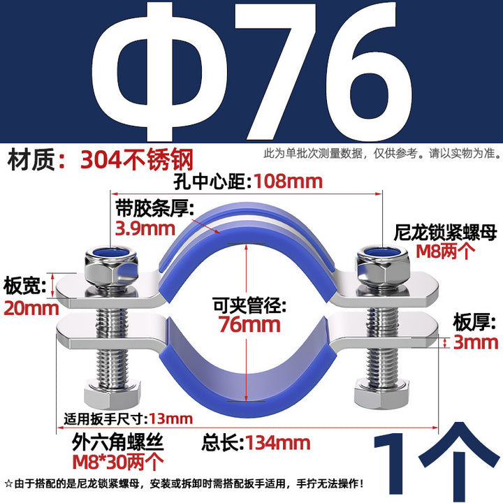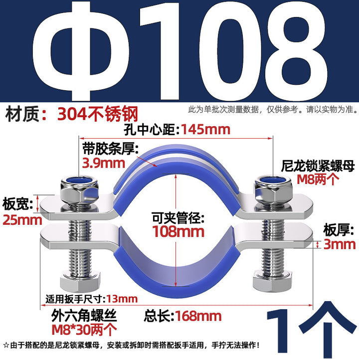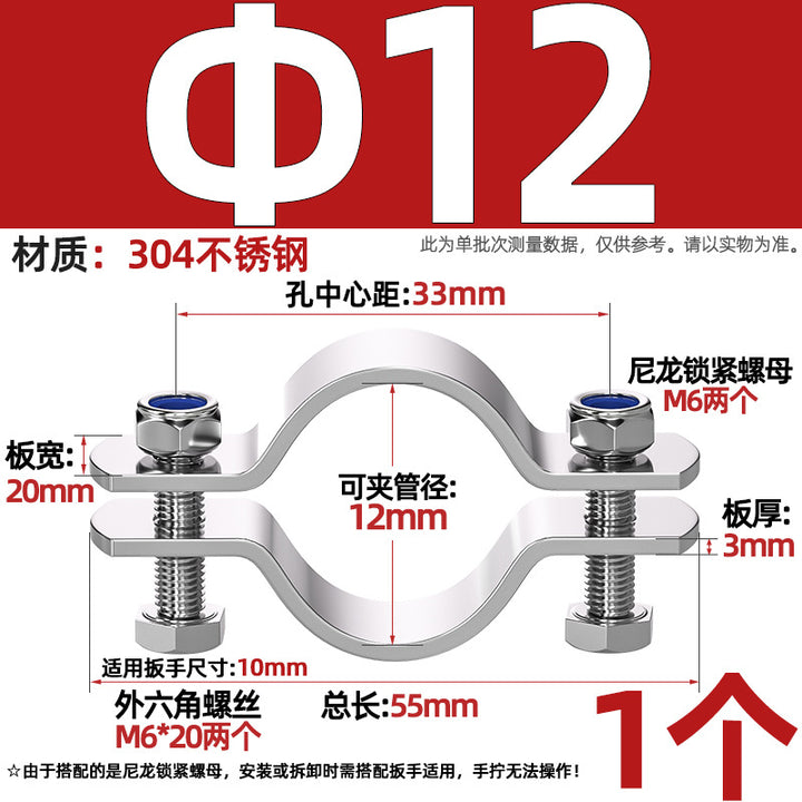 304 stainless steel clamp thickened clamp fixed pipe pipe clamp utility pole pipe bracket pipe clamp steel clamp pipe clamp