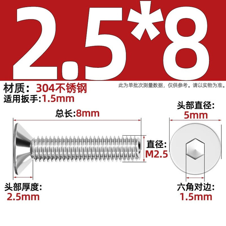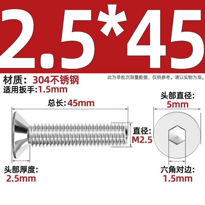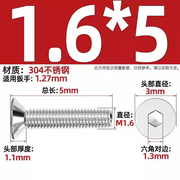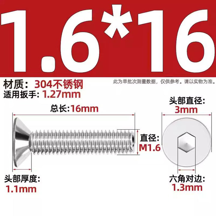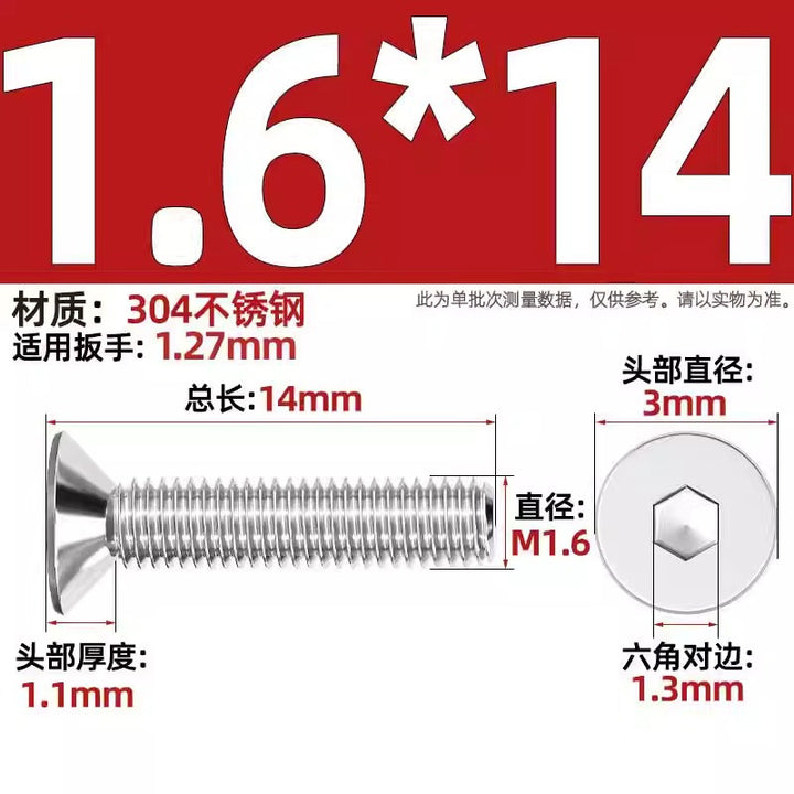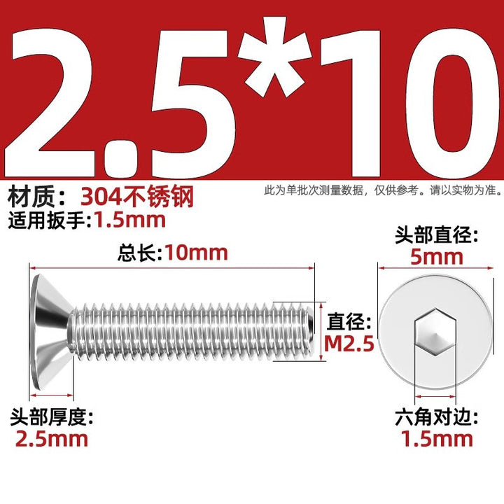 M1.6 * 3-10 pieces, M1.6 * 4-10 pieces, M1.6 * 5-10 pieces, M1.6 * 6-10 pieces, M1.6 * 8-10 pieces, M1.6 * 10-10 pieces, M1.6 * 12-10 pcs, M1.6 * 14-10 pcs, M1.6 * 16-10 pieces, M2 * 3-10 pieces, M2 * 4-10 pieces, M2 * 5-10 pieces, M2 * 6-10 pieces, M2 * 8-10 pieces, M2 * 10-10 pieces, M2 * 12-10 pcs, M2 * 14-10 pcs, M2 * 16-10 pieces, M2 * 18-10 pcs, M2 * 20-10 pieces, M2 * 22-10 pieces, M2 * 25-10 pcs, M2 * 28-10 pcs, M2 * 30-10 pieces, M2 * 35-10 pieces, M2 * 40-10 pieces, M2.5 * 3-10 pieces, M2.5 * 4-10 pieces, M2.5 * 5-10 pieces, M2.5 * 6-10 pieces, M2.5 * 8-10 pieces, M2.5 * 10-10 pieces, M2.5 * 12-10 pieces, M2.5 * 14-10 pieces, M2.5 * 16-10 pieces, M2.5 * 18-10 pieces, M2.5 * 20-10 pieces, M2.5 * 22-10 pieces, M2.5 * 25-10 pieces, M2.5 * 28-10 pieces, M2.5 * 30-10 pieces, M2.5 * 35-10 pieces, M2.5 * 40-10 pieces, M2.5 * 45-10 pieces, M2.5 * 50-10 pieces, M3 * 3-10 pieces, M3 * 4-10 pieces, M3 * 5-10 pieces, M3 * 6-10 pieces, M3 * 8-10 pieces, M3 * 10-10 pieces, M3 * 12-10 pcs, M3 * 14-10 pcs, M3 * 15-10 pcs, M3 * 16-10 pcs, M3 * 18-10 pcs, M3 * 20-10 pieces, M3 * 22-10 pieces, M3 * 25-10 pcs, M3 * 30-10 pieces, M3 * 35-10 pieces, M3 * 40-10 pcs, M3 * 45-1 piece, M3 * 50-1 piece, M3 * 55-1 piece, M3 * 60-1 piece, M3 * 65-1 piece, M3 * 70-1 piece, M3 * 75-1 piece, M3 * 80-1 piece, M3 * 85-1 piece, M3 * 90-1 piece, M3 * 95-1 piece, M3 * 100-1 piece, M4 * 5-10 pieces, M4 * 6-10 pieces, M4 * 8-10 pieces, M4 * 10-10 pieces, M4 * 12-10 pcs, M4 * 14-10 pcs, M4 * 15-10 pcs, M4 * 16-10 pcs, M4 * 18-10 pcs, M4 * 20-10 pcs, M4 * 22-10 pieces, M4 * 25-10 pcs, M4 * 30-10 pieces, M4 * 32-1 piece, M4 * 35-1 piece, M4 * 40-1 piece, M4 * 45-1 piece, M4 * 50-1 piece, M4 * 55-1 piece, M4 * 60-1 piece, M4 * 65-1 piece, M4 * 70-1 piece, M4 * 75-1 piece, M4 * 80-1 piece, M4 * 85-1 piece, M4 * 90-1 piece |