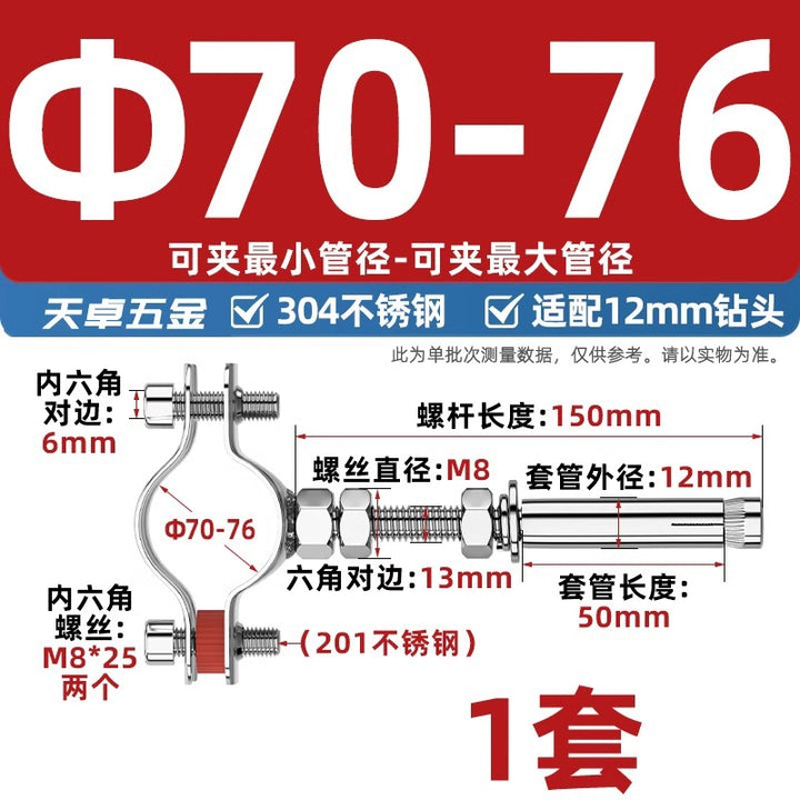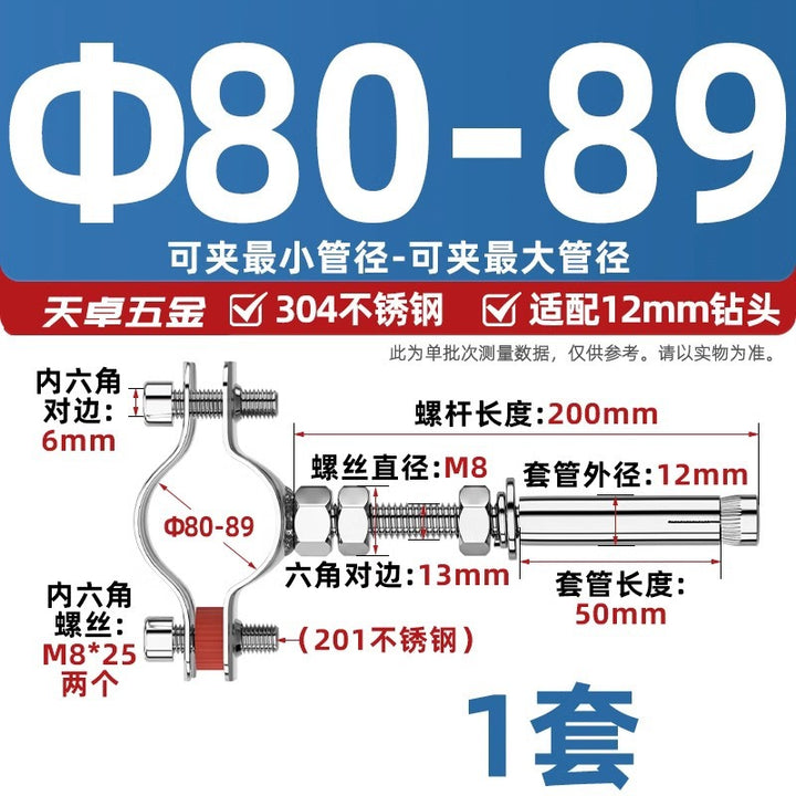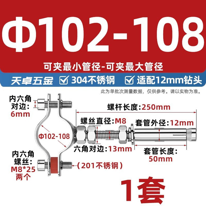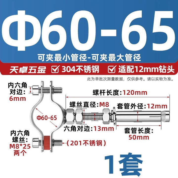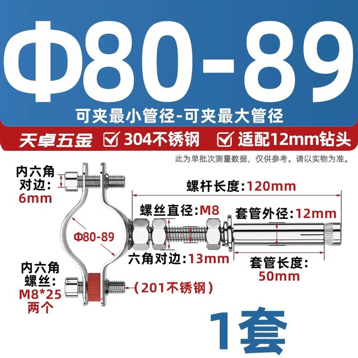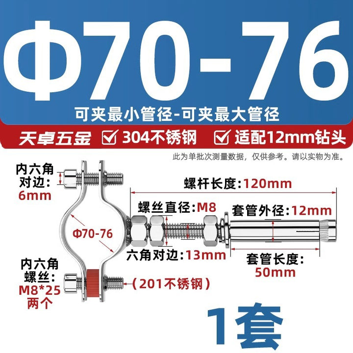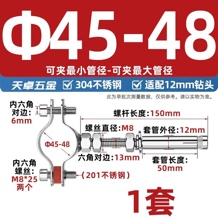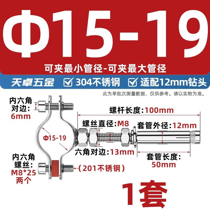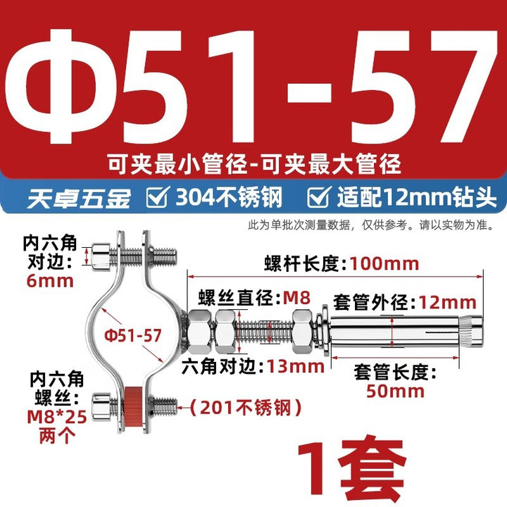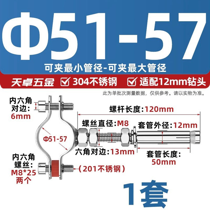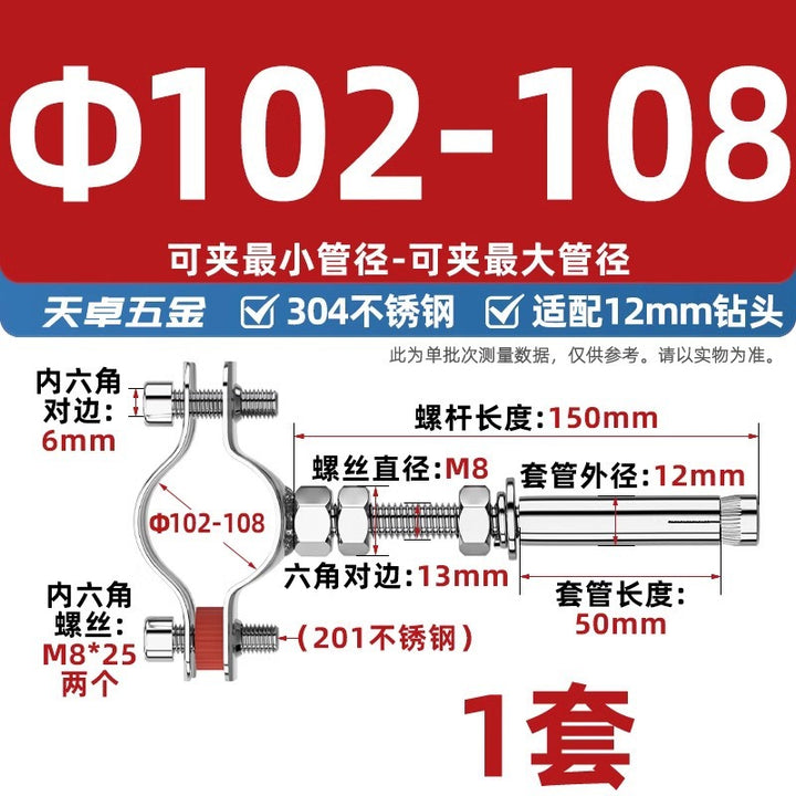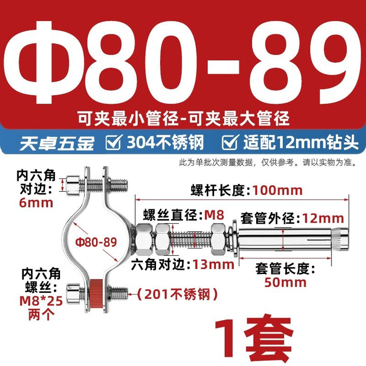 304 Stainless Steel Fixed Pipe Bracket Expansion Screw Clasp Hoop Pipe Clamp Water Pipe Clamp Clamp Pipe Clamp