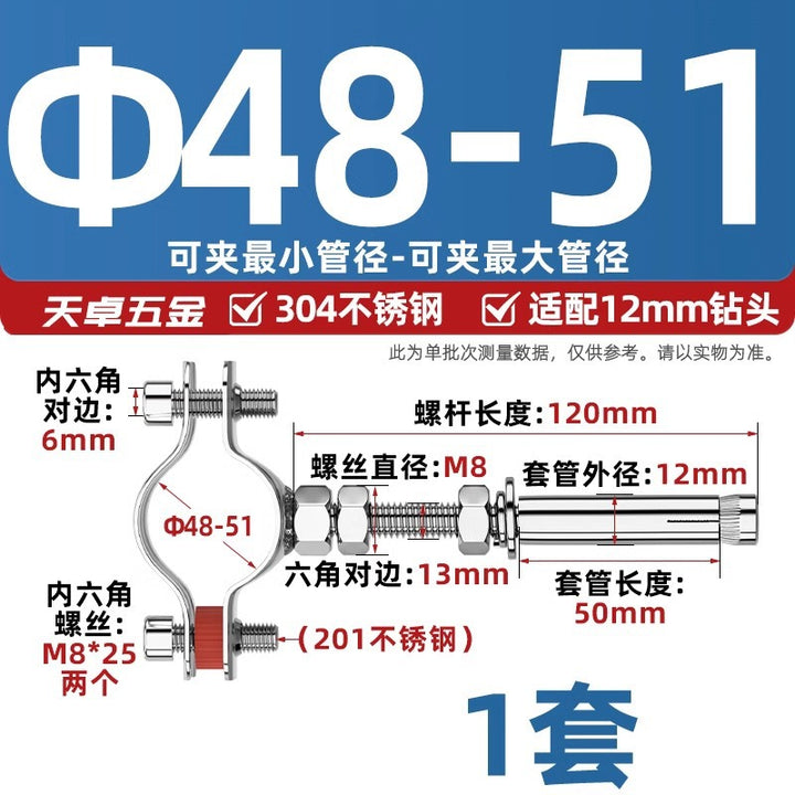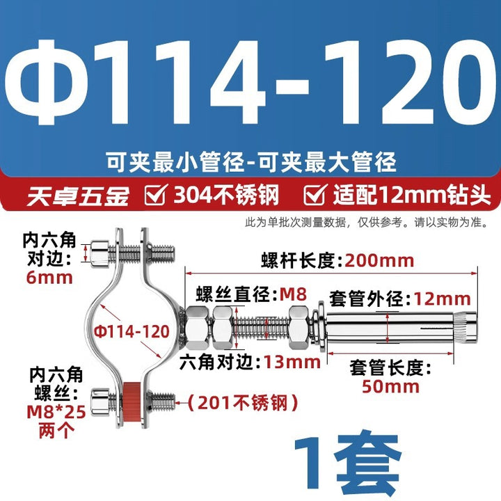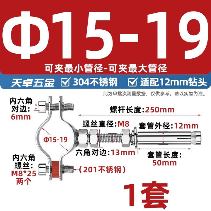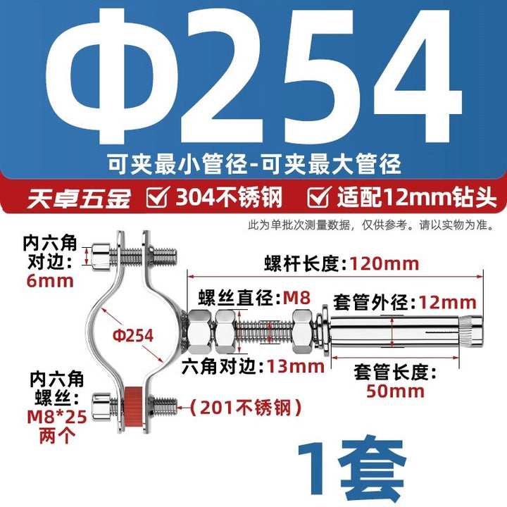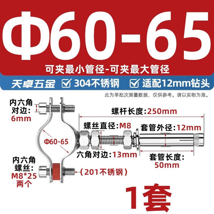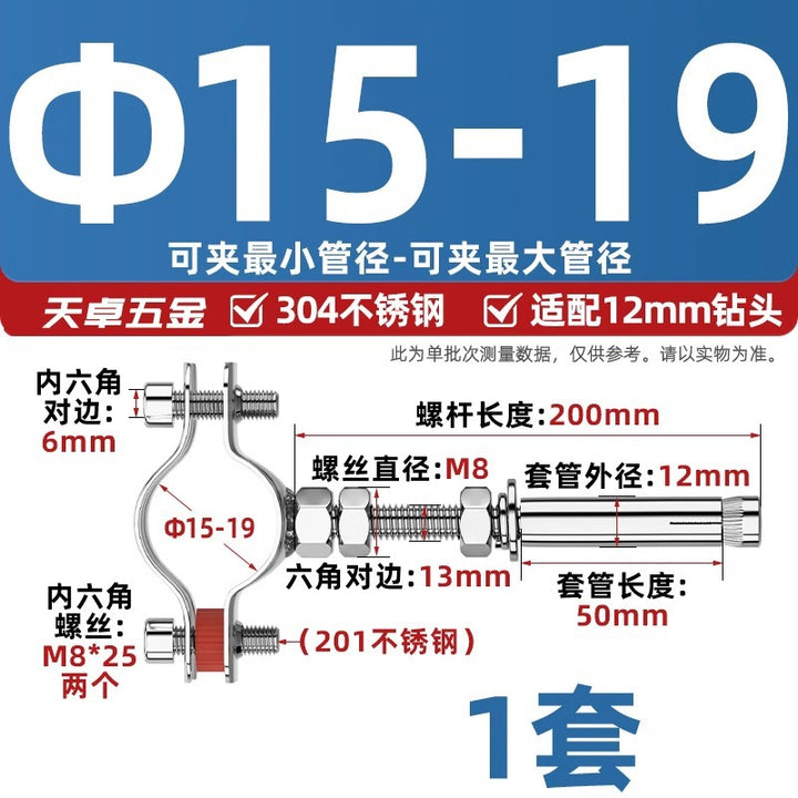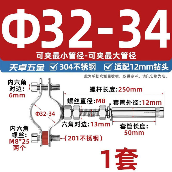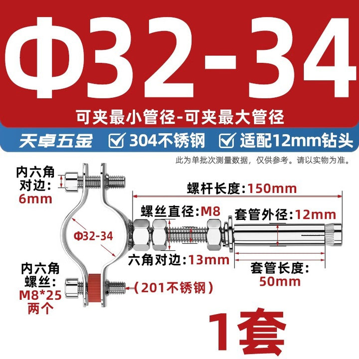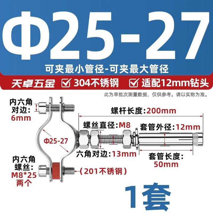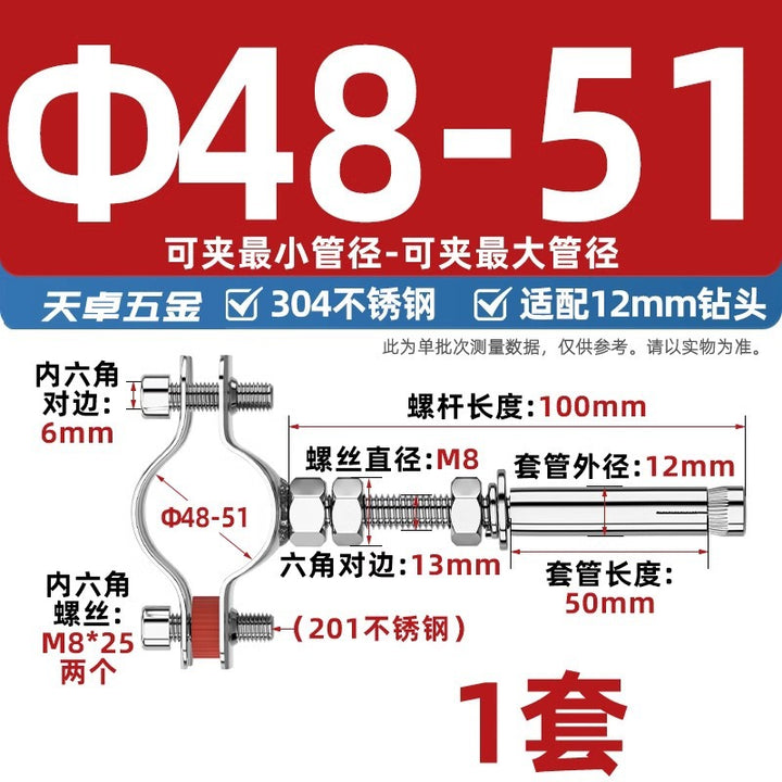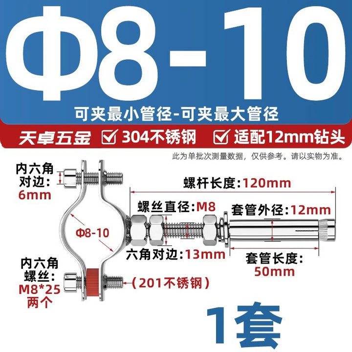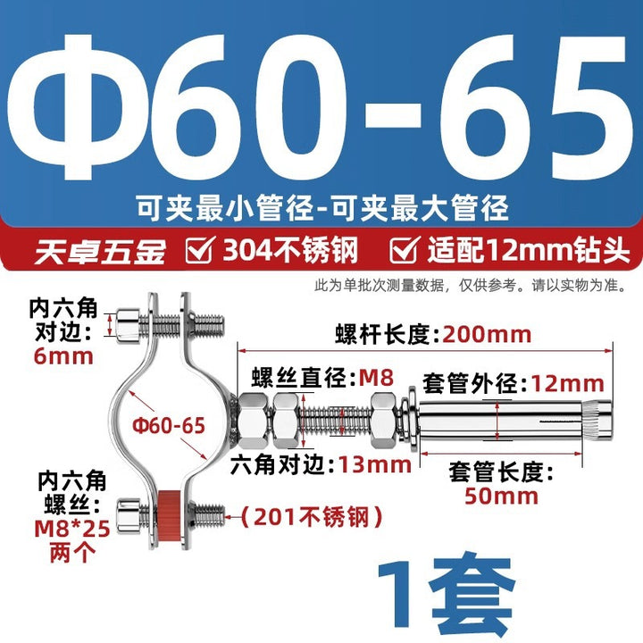 304 Stainless Steel Fixed Pipe Bracket Expansion Screw Clasp Hoop Pipe Clamp Water Pipe Clamp Clamp Pipe Clamp