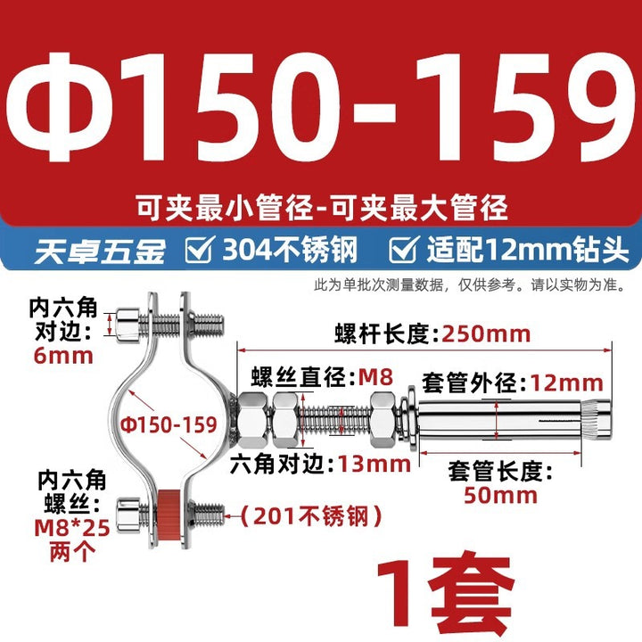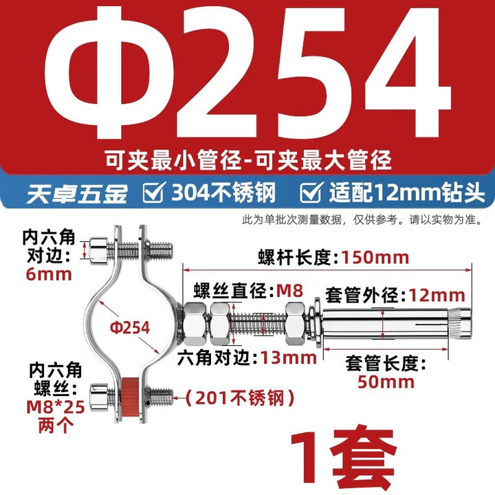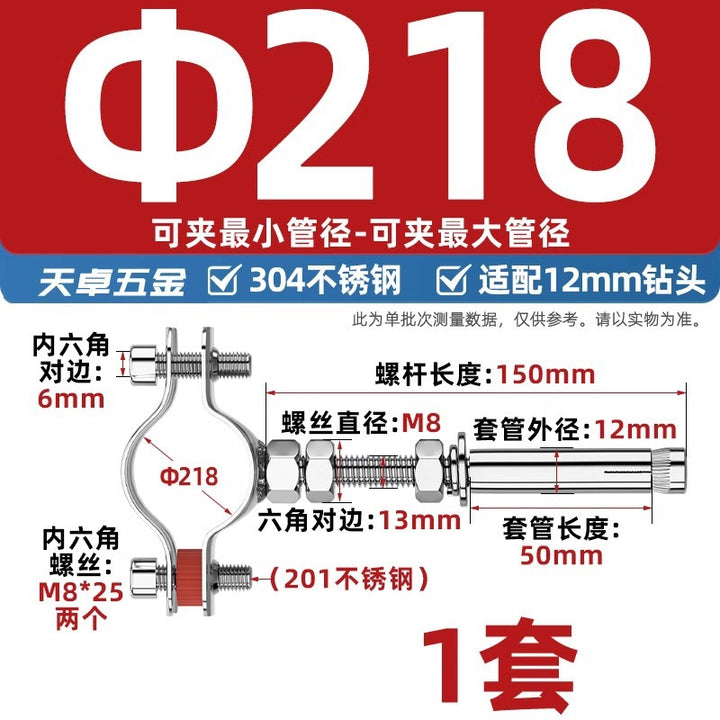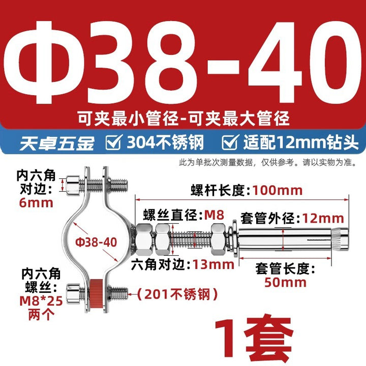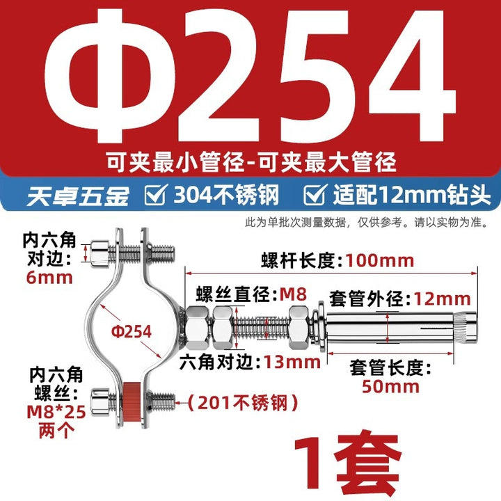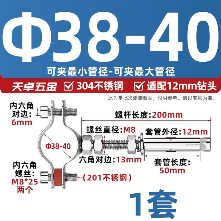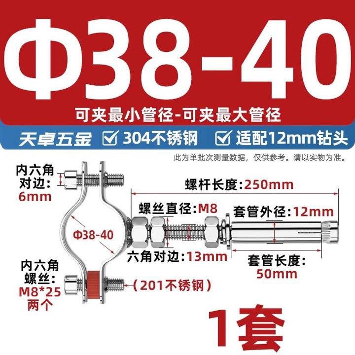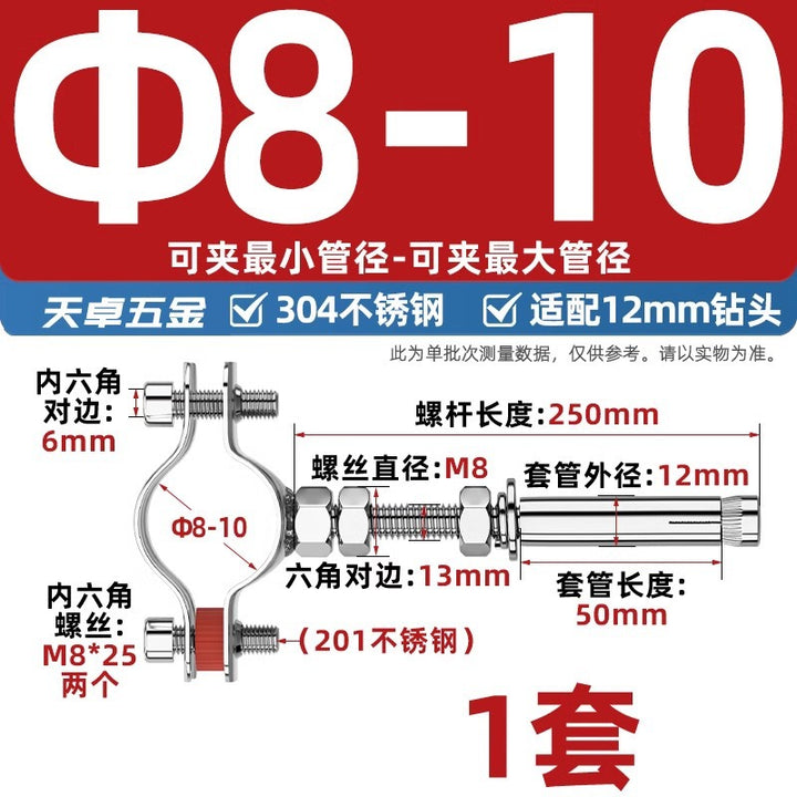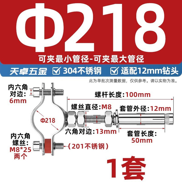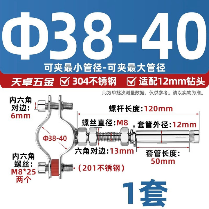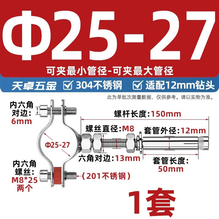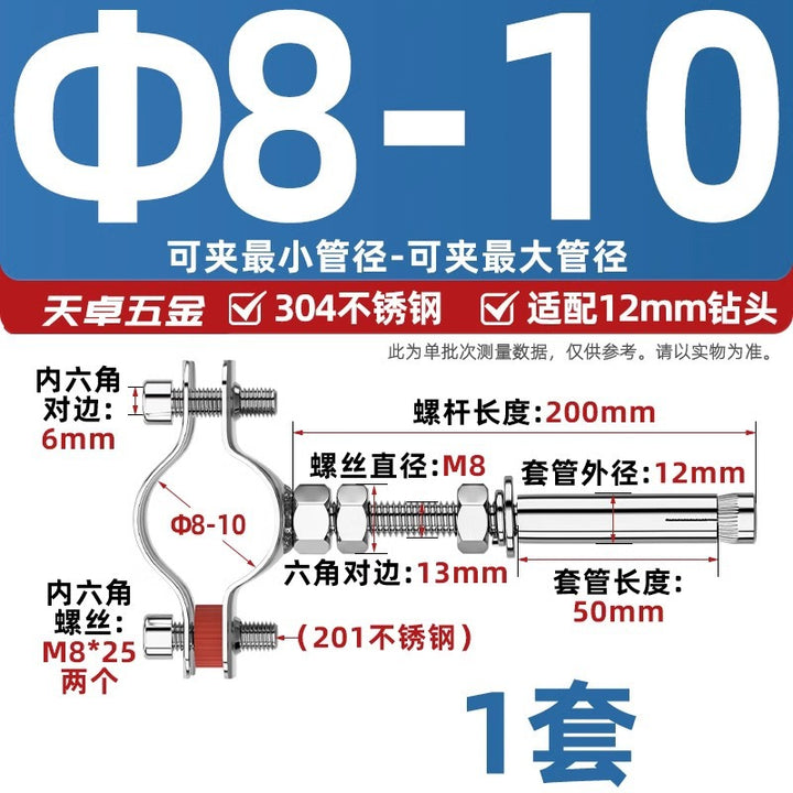 304 Stainless Steel Fixed Pipe Bracket Expansion Screw Clasp Hoop Pipe Clamp Water Pipe Clamp Clamp Pipe Clamp