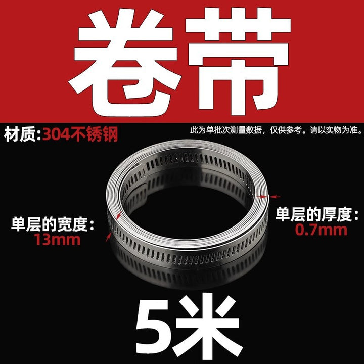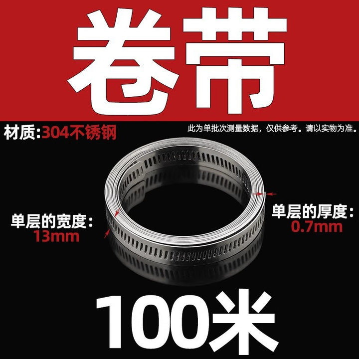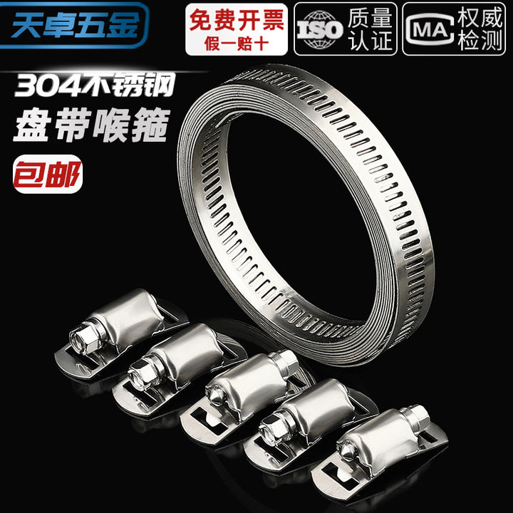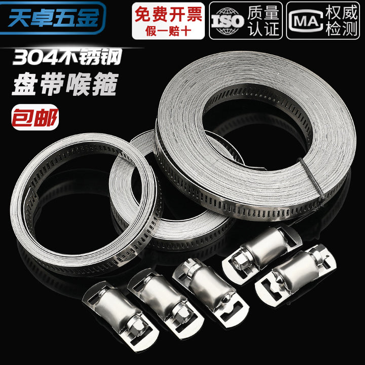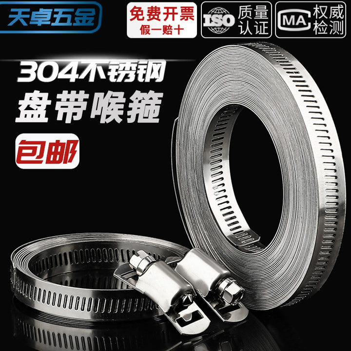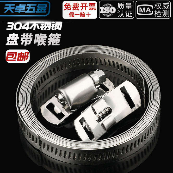 304 stainless steel homemade American throat hoop clamp large pipe clamp through hole steel belt pipe hoop coil strap binding belt
