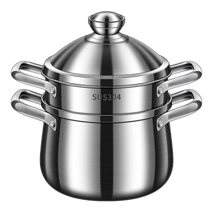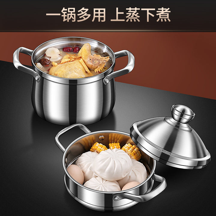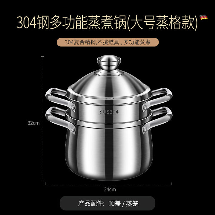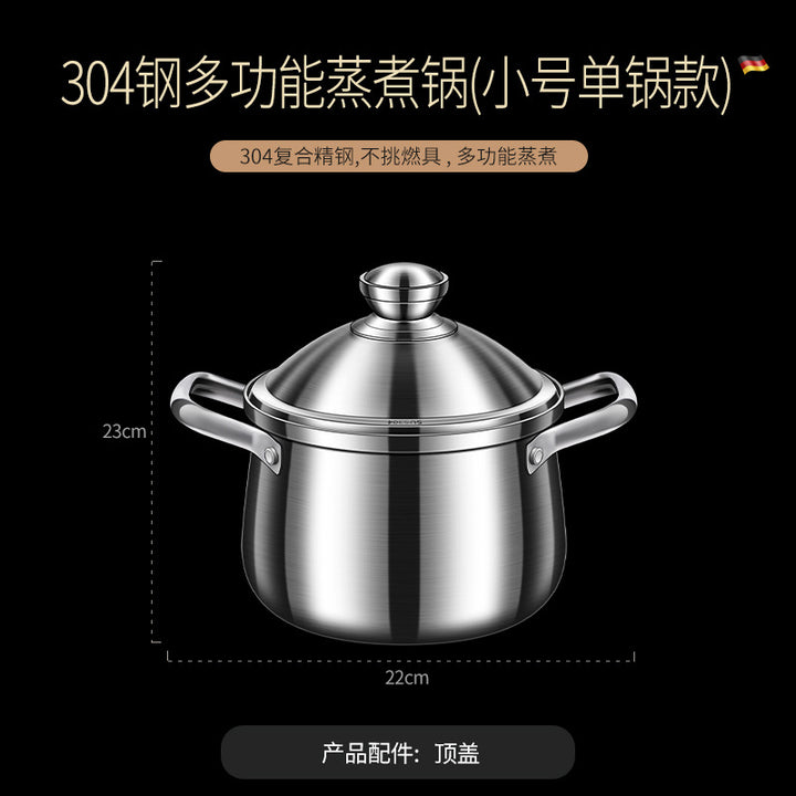 304 stainless steel multi-functional cooking pot Thickened multi-layer kitchen with steamer compartment Household large-capacity cooking pot