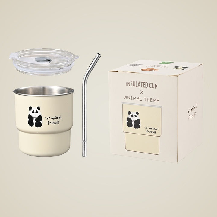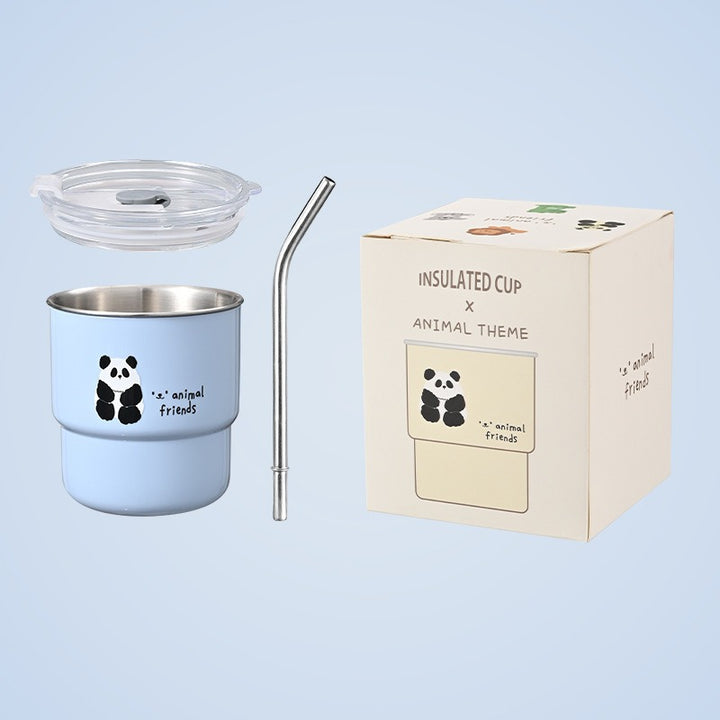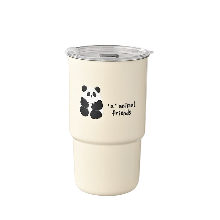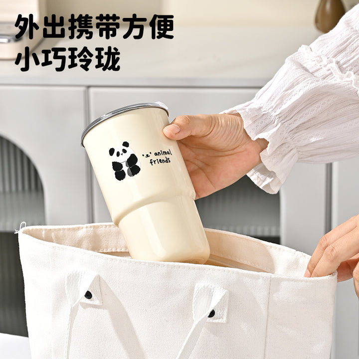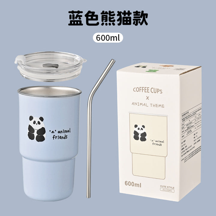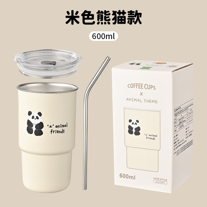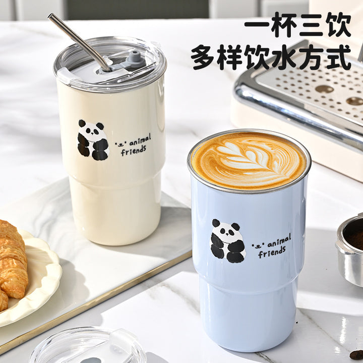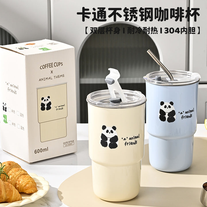 304 stainless steel panda coffee cup large capacity with lid with straw cup high value cold drink cup juice water cup
