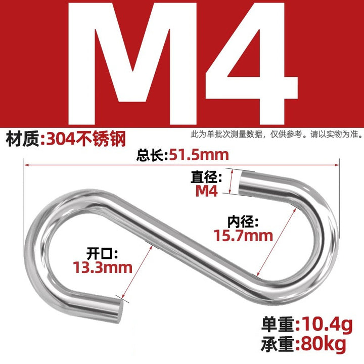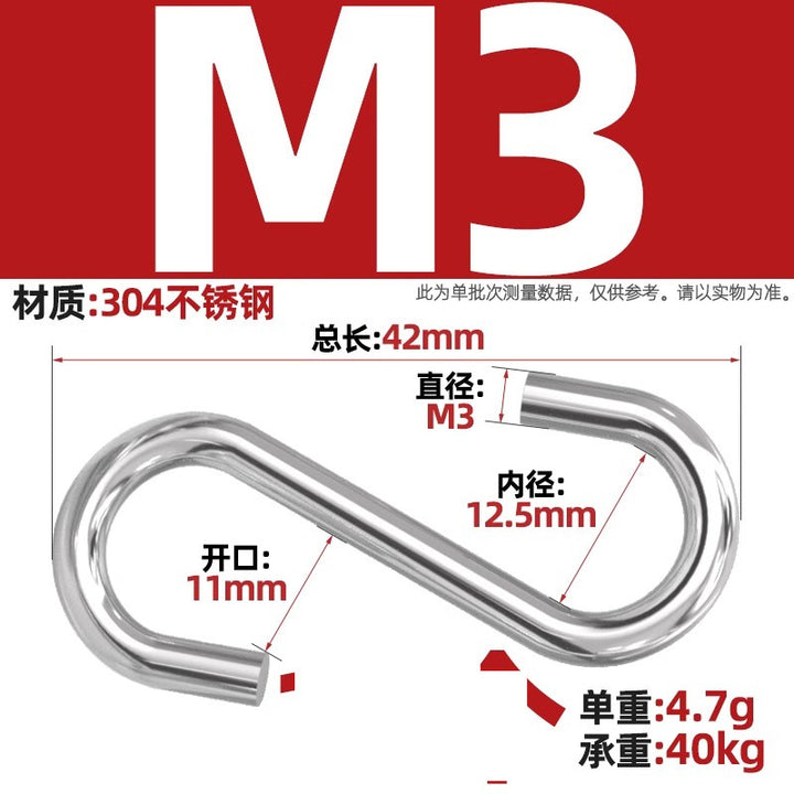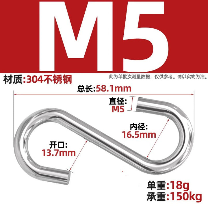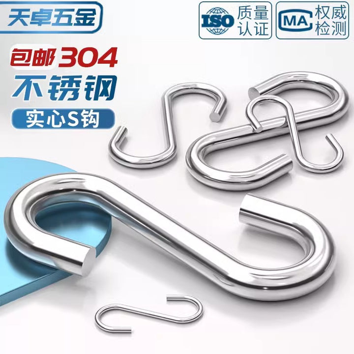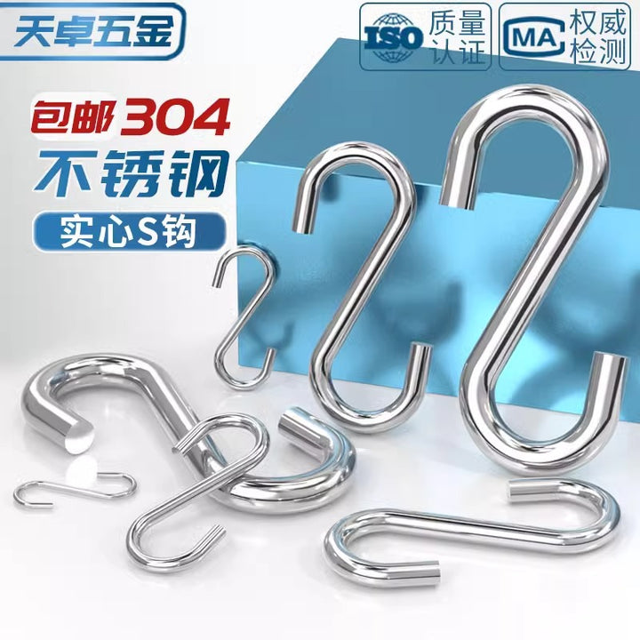 304 stainless steel solid S hook kitchen S-shaped hook S-shaped metal hook drying sausage bacon kitchen utensils room wall hanging clothes and hats