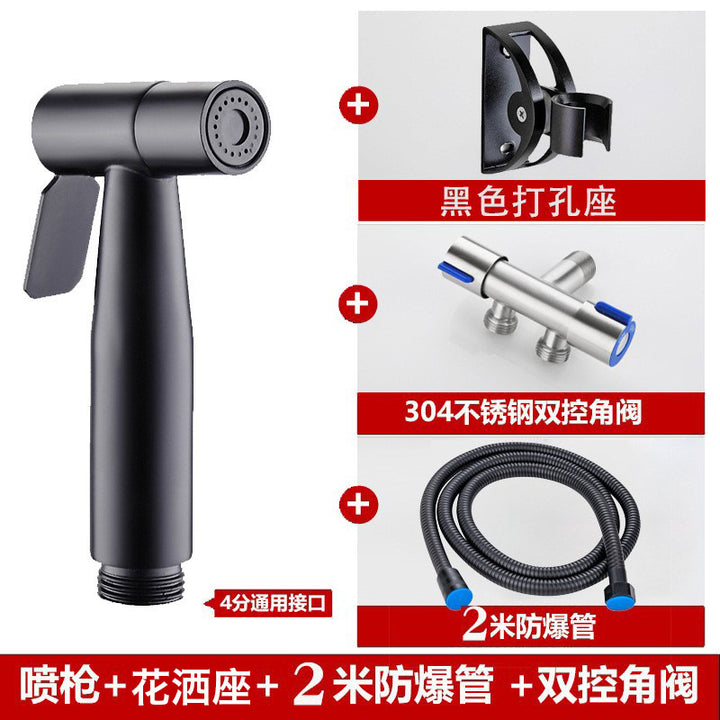304 stainless steel spray gun [black], 304 stainless steel spray gun [black] two-piece set A, 304 stainless steel spray gun [black] three-piece set A, 304 stainless steel spray gun [black] three-piece set B, 304 stainless steel spray gun [black] four-piece set A, 304 stainless steel spray gun [black] four-piece set B, 304 stainless steel spray gun [black] four-piece set C, 304 stainless steel spray gun [black] four-piece set D, 304 stainless steel spray gun [black] two-piece set B, 304 stainless steel double angle valve, 304 stainless steel tee, 1.5 meters phone tube, 2 meters phone tube, 1.5M black explosion-proof tube, 2 meters black explosion-proof tube, Space aluminum non-punching hook holder, Black perforated curved seat, Black punched with hook holder |