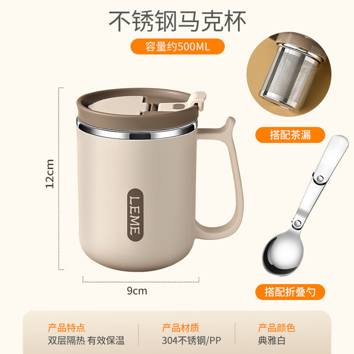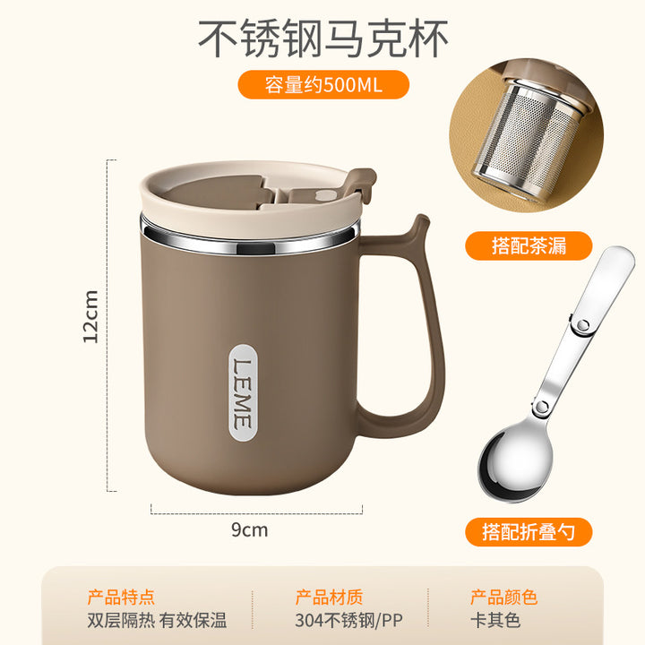304 stainless steel thermal insulation mug with lid large capacity coffee cup oat cup men's and women's office household cup